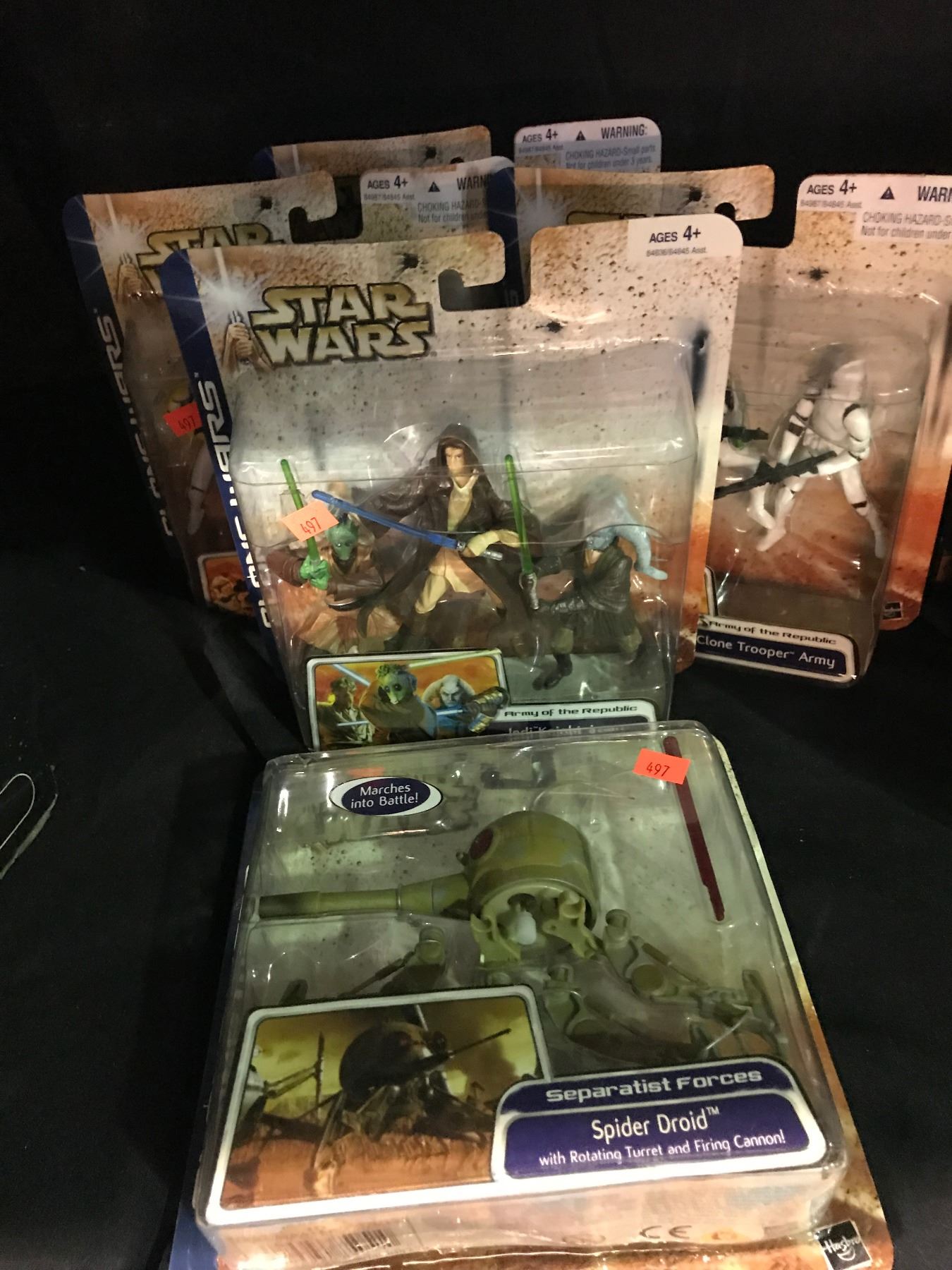 3 STAR WARS HASBRO CLONE WARS CLONE TROOPER ARMY FIGURES 1 JEDI KNIGHT ARMY FIGURE SET & SEPARATIST SPIDER DROID ALL IN ORIGINAL PACKAGING