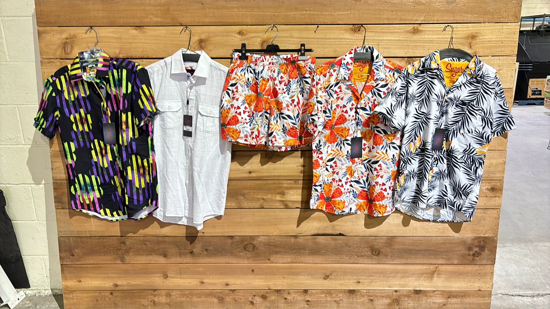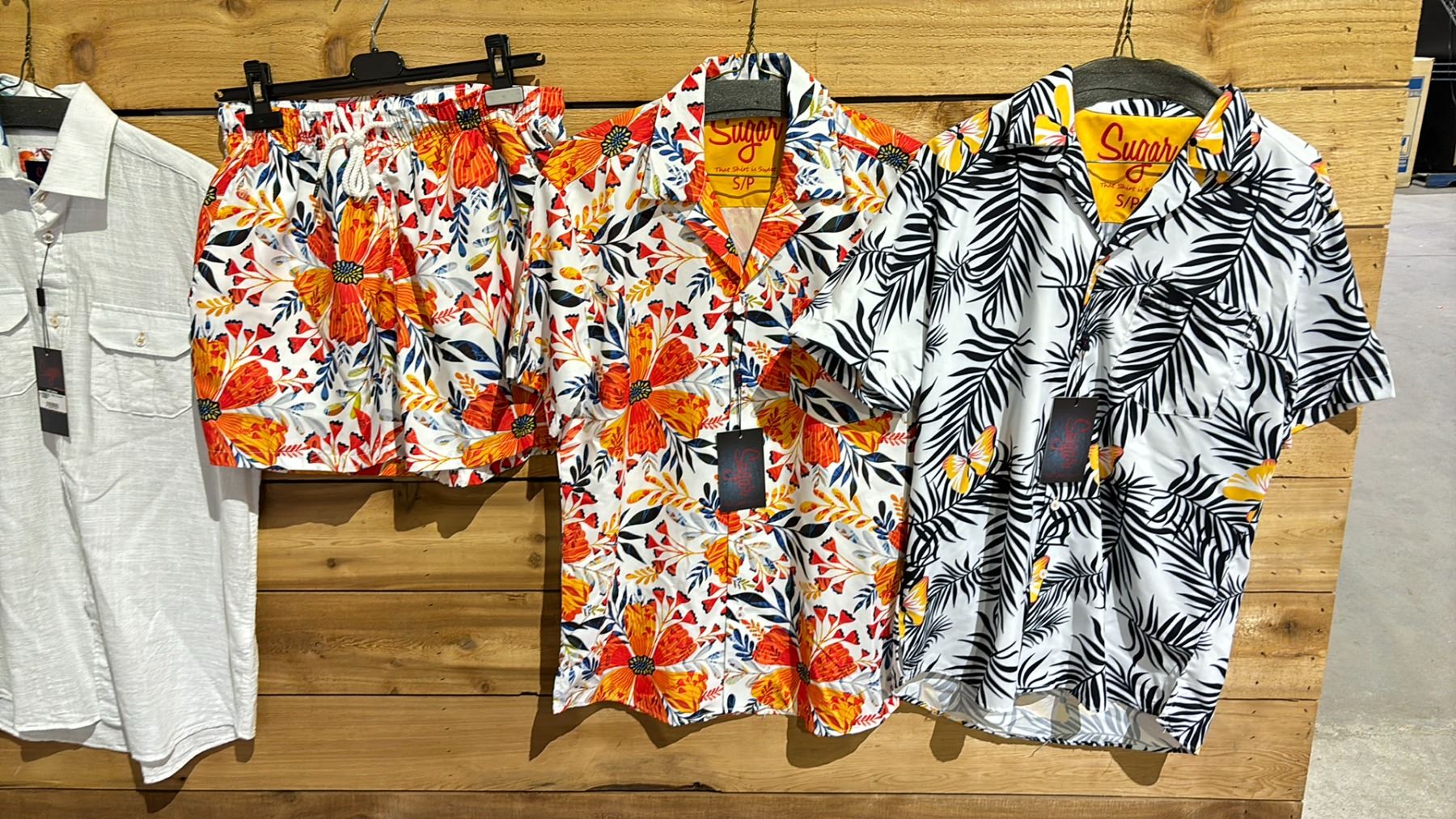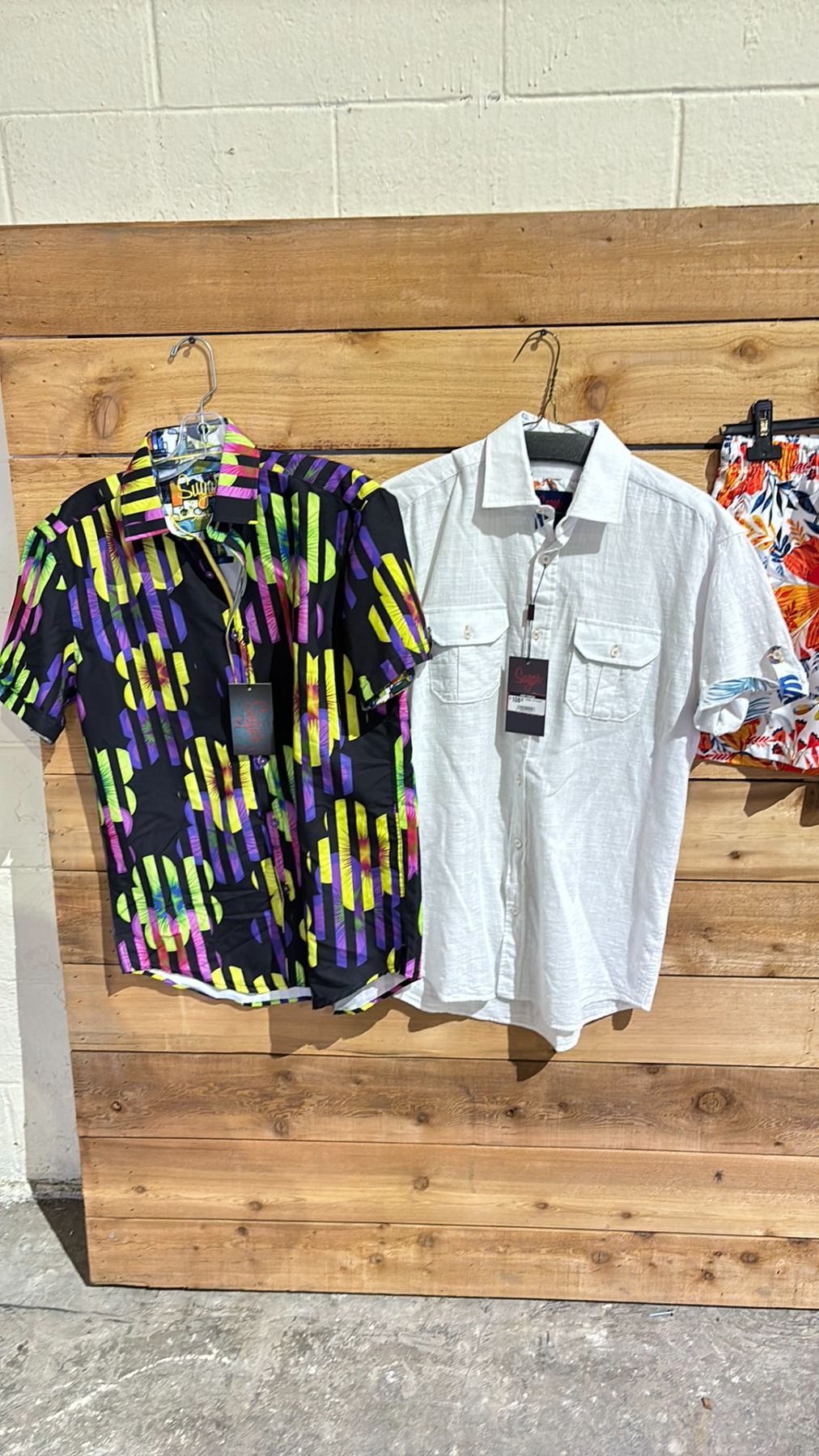 3- SUGAR T-SHIRT BUTTON DRESS SHIRTS, AND 1-SHIRT AND SHORT SET SIZE SMALL