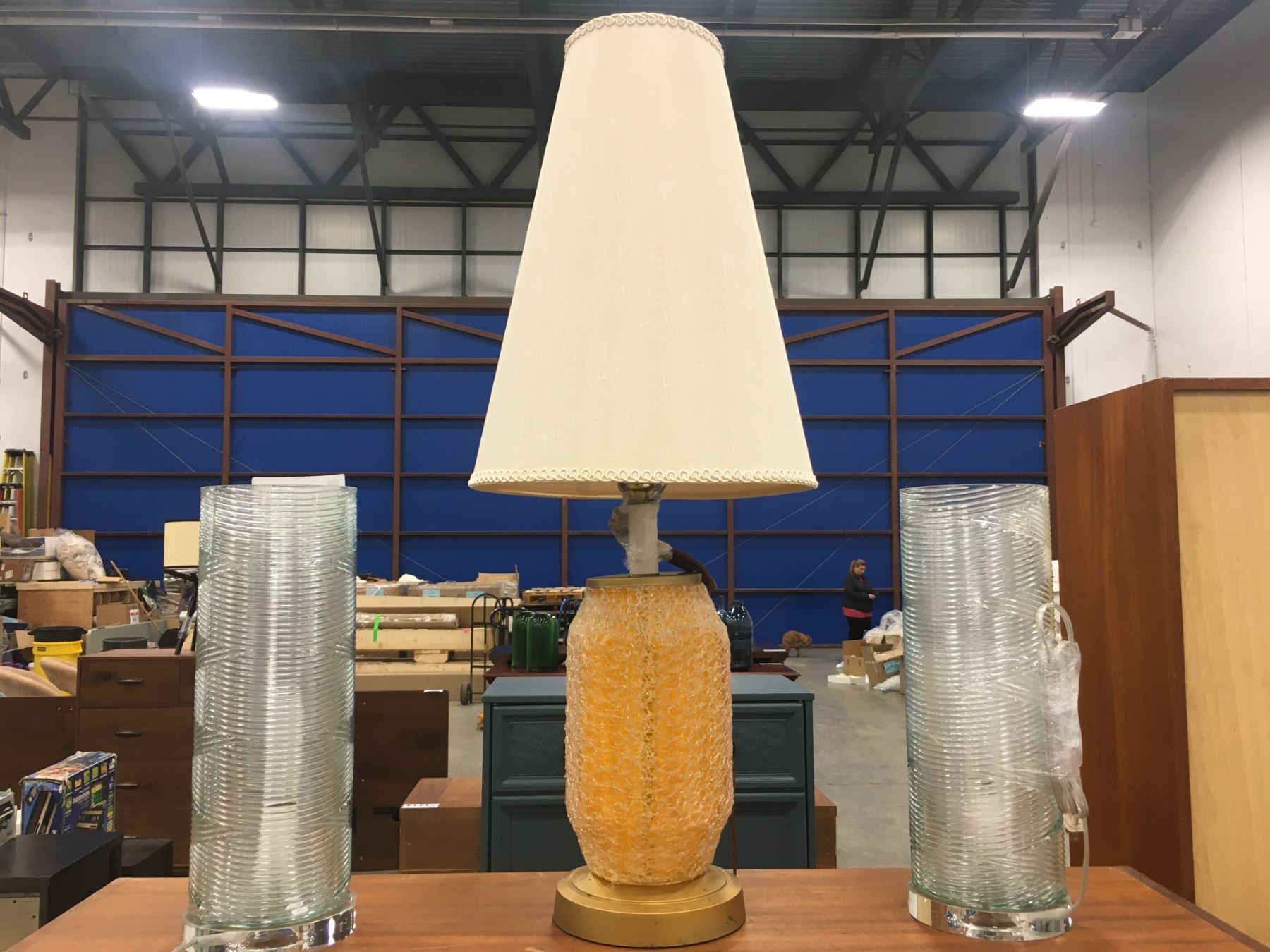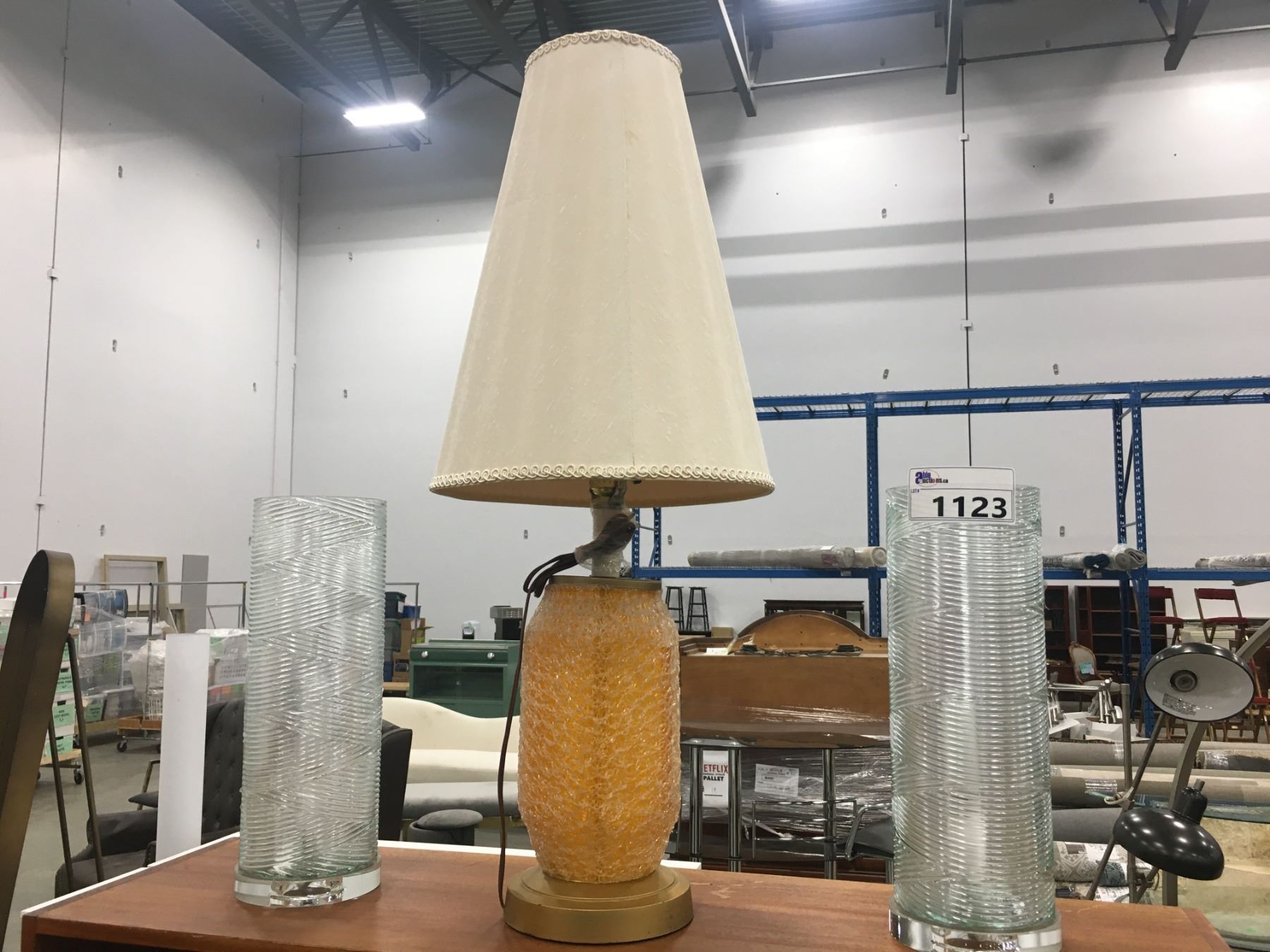 3 TABLE LAMPS-MID CENTURY MODERN SPAGHETTI GLASS LAMP & 2 CONTEMPORARY GLASS TUBE LAMPS