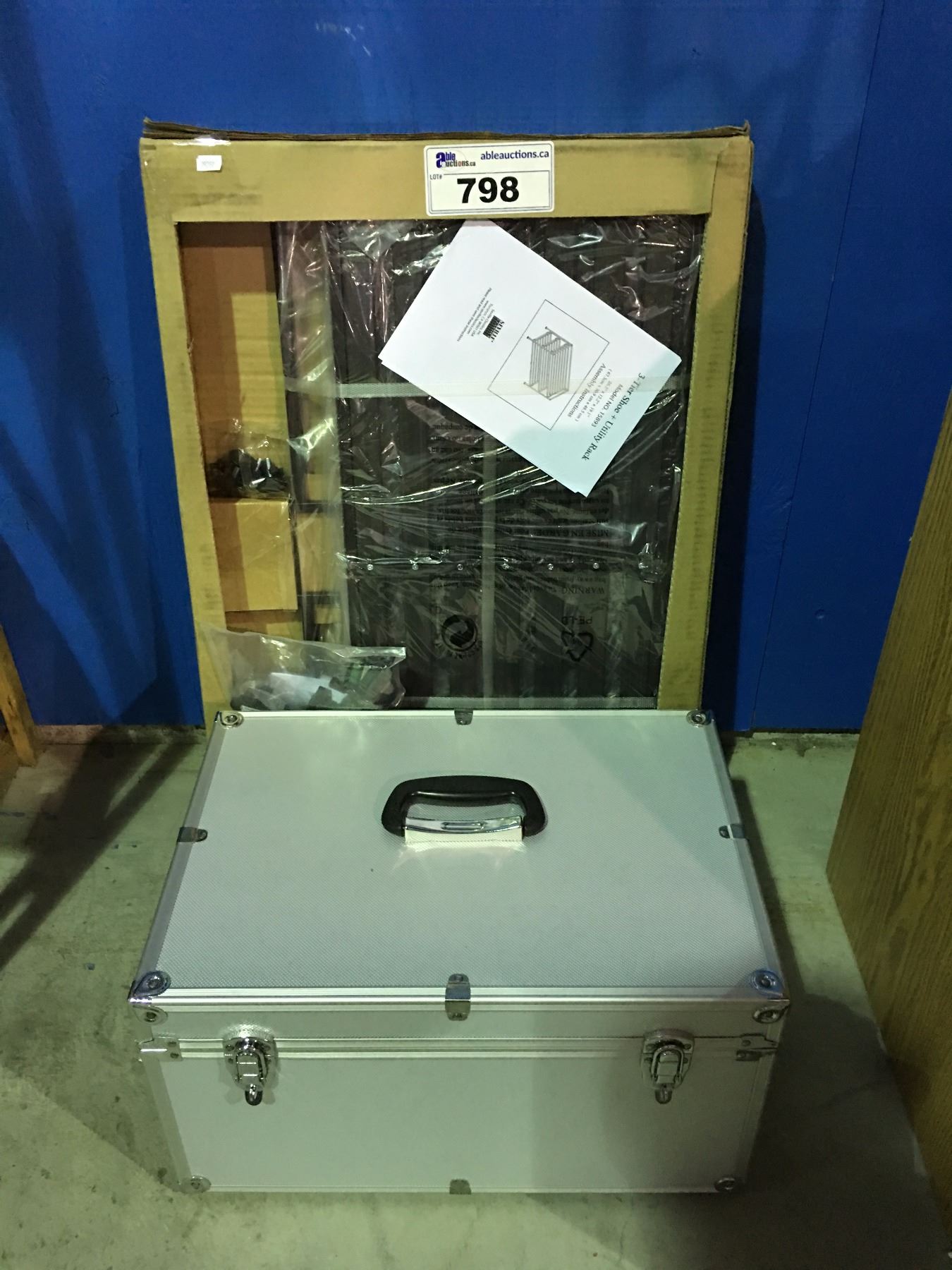3 TEIR SHOE/UTILITY RACK & LARGE METAL FRAMED COSMETICS CASE