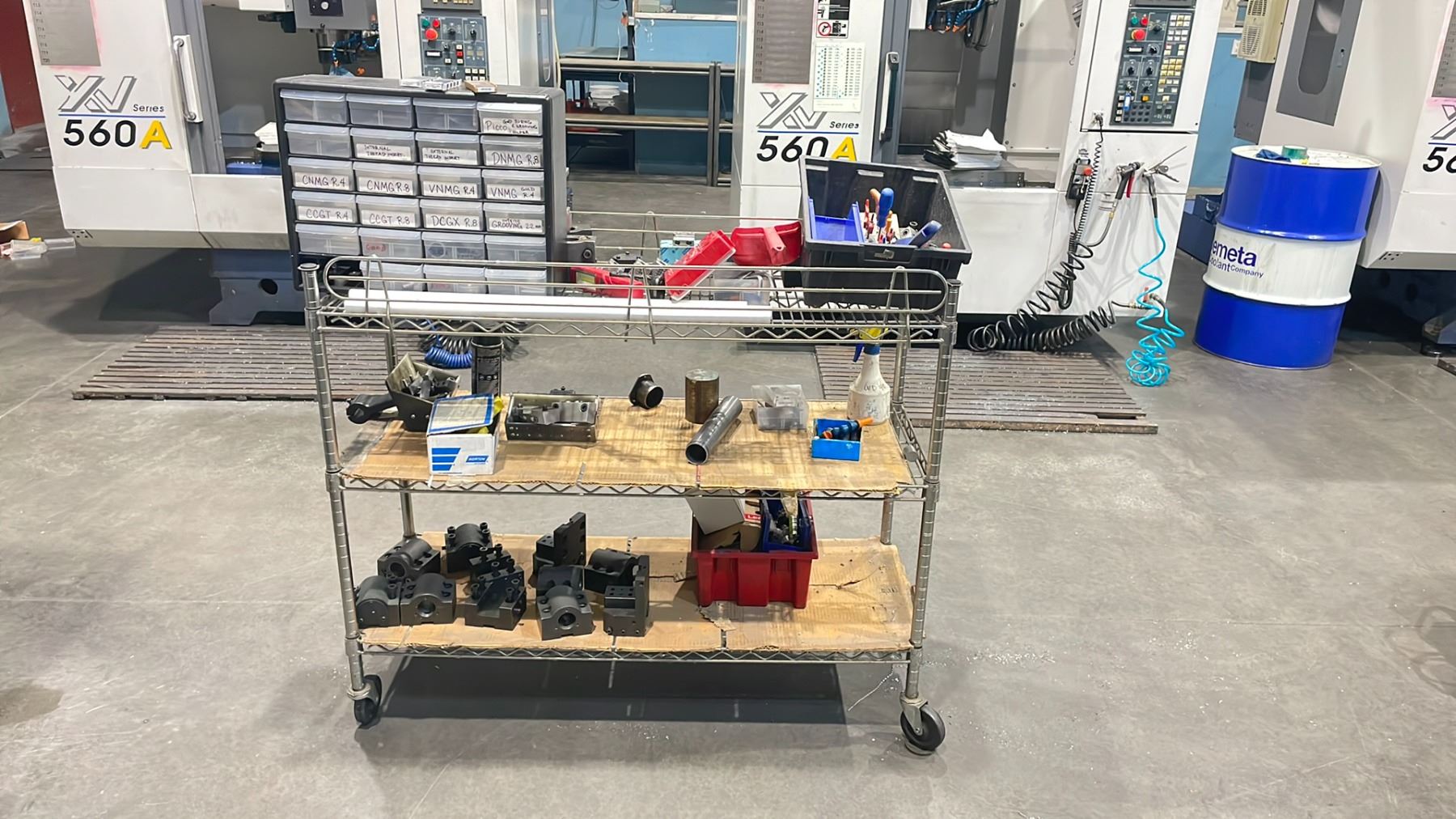 3 TIER MOBILE METRO STYLE RACKING SYSTEM WITH ASSORTED MACHINE TOOLING