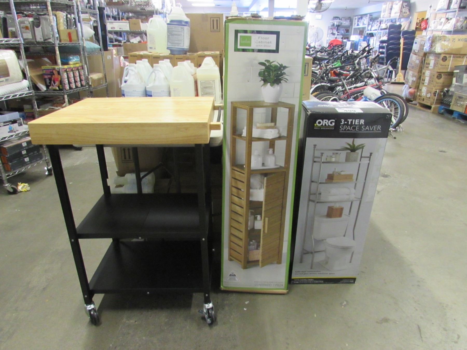 3 TIER ROLLING CART, BAMBOO FLOOR CABINET WITH DOOR, 3-TIER SPACE SAVER