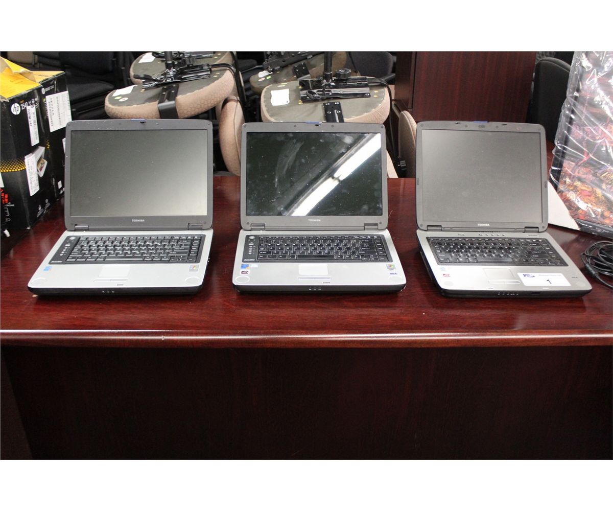 3 TOSHIBA SATELLITE NOTEBOOK COMPUTERS, NO HARD DRIVES, ONLY ONE POWER SUPPLY