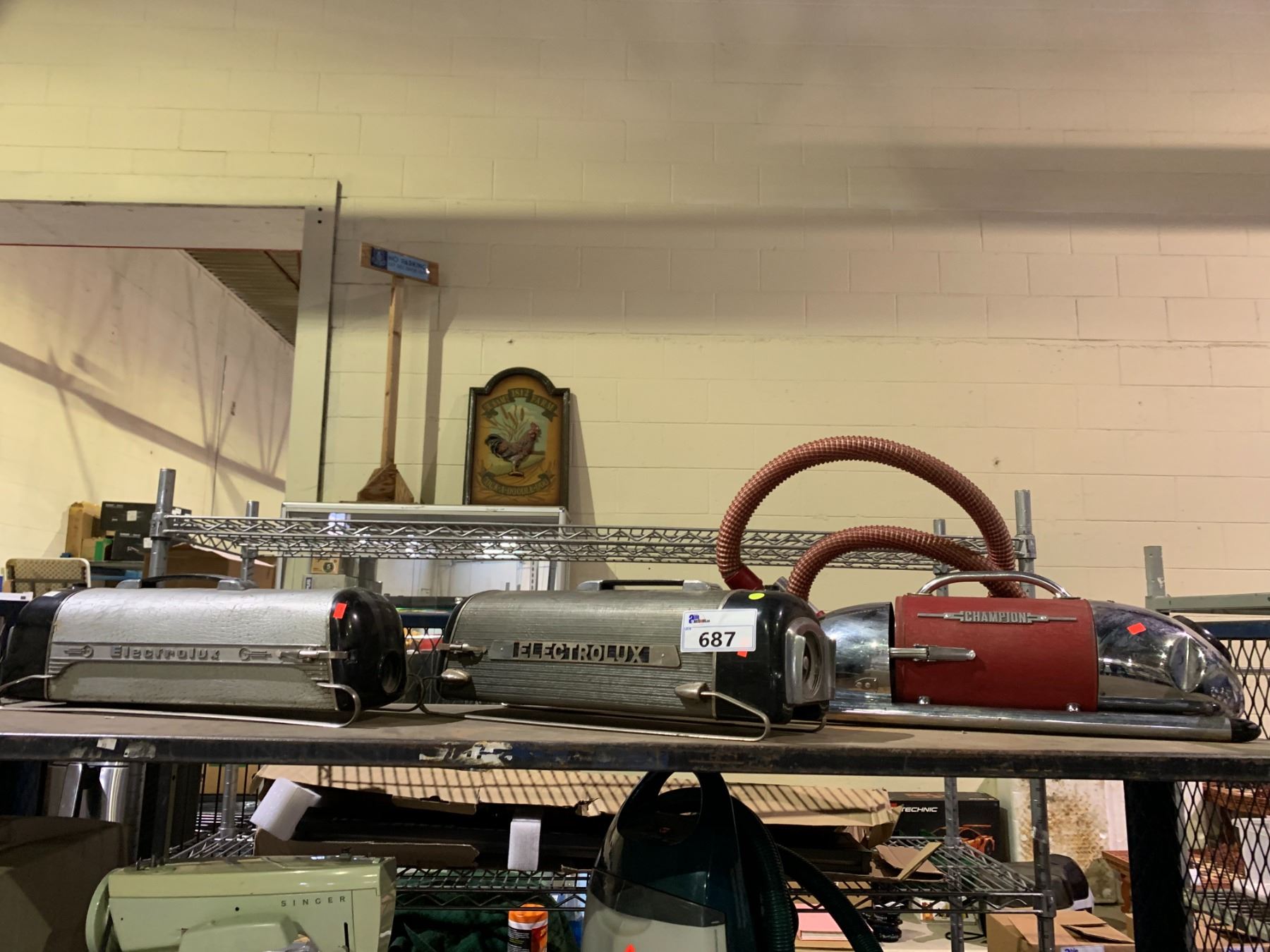 3 VINTAGE VACUUM CLEANERS INCLUDING; CHAMPION & ELECTROLUX