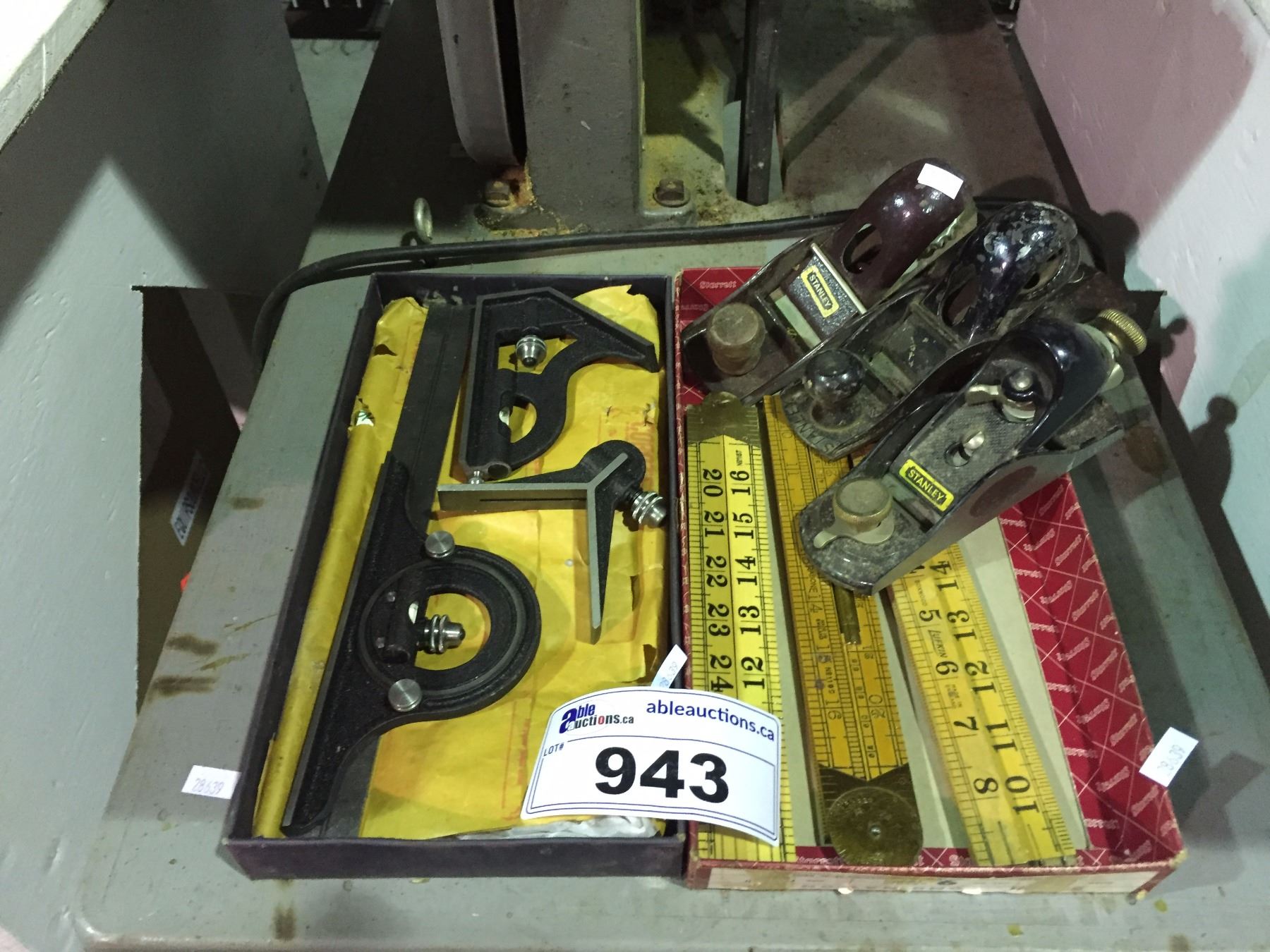 3 WOOD PLANERS, 3 VINTAGE RULERS & WOOD WORKS LEVEL RULER