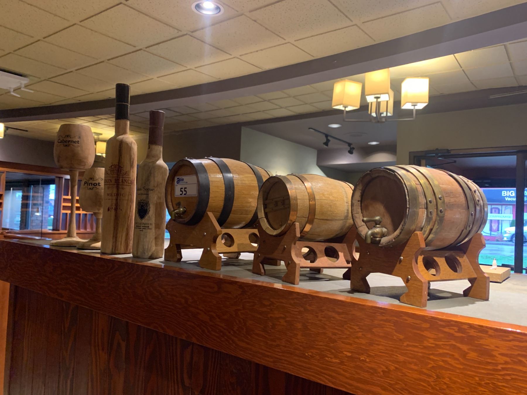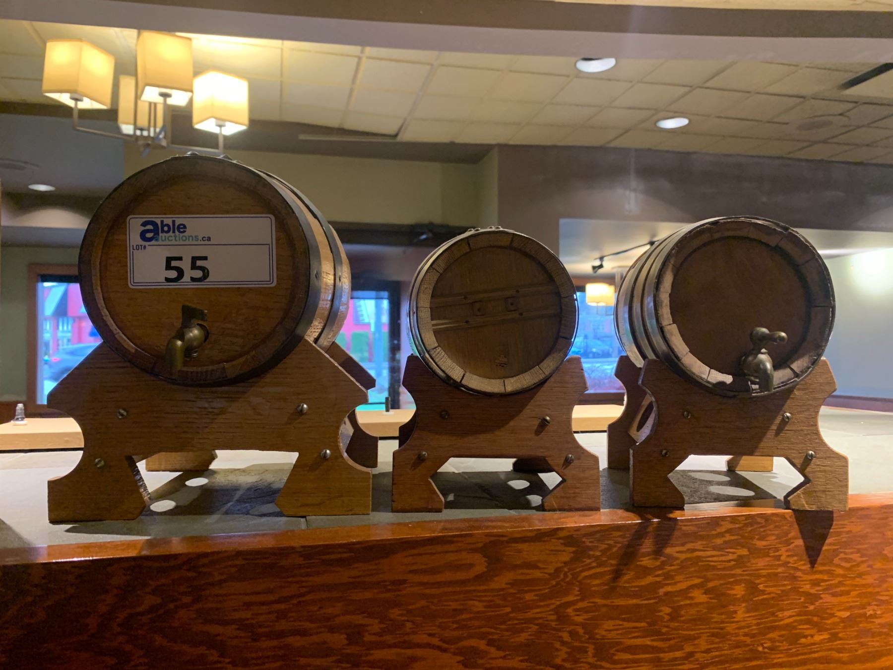 3 WOODEN KEGS & 4 DECORATIVE BAR ITEMS