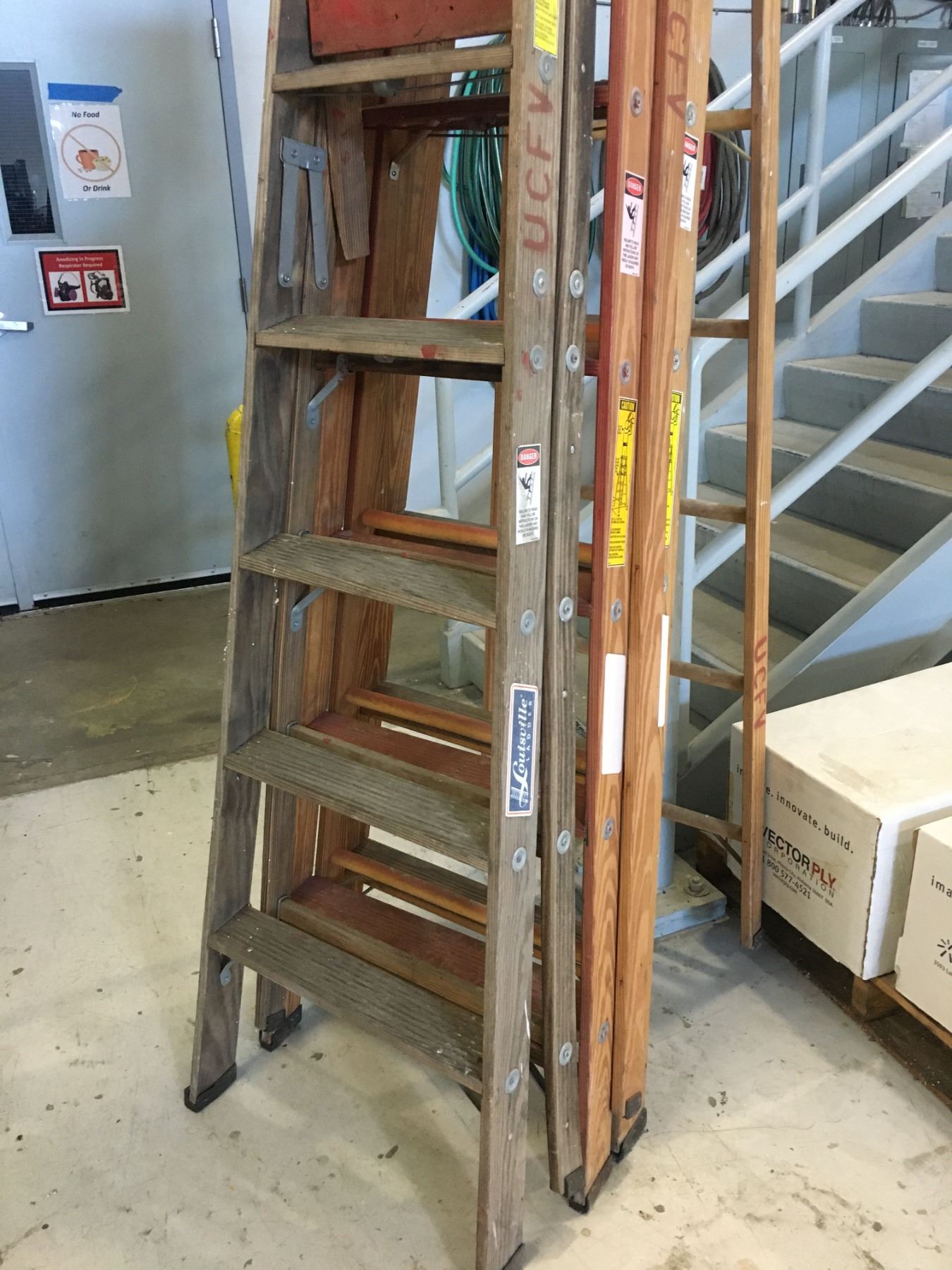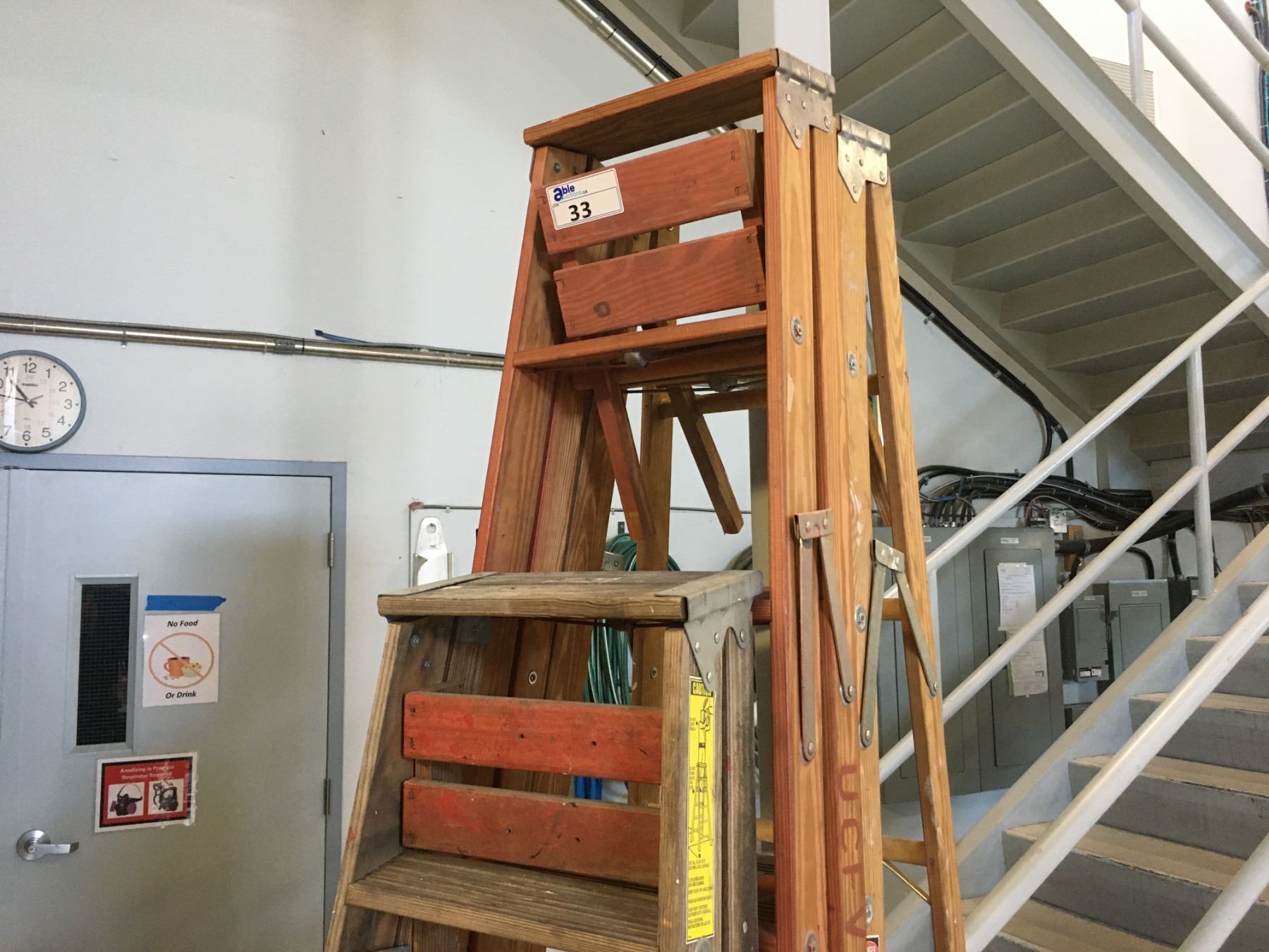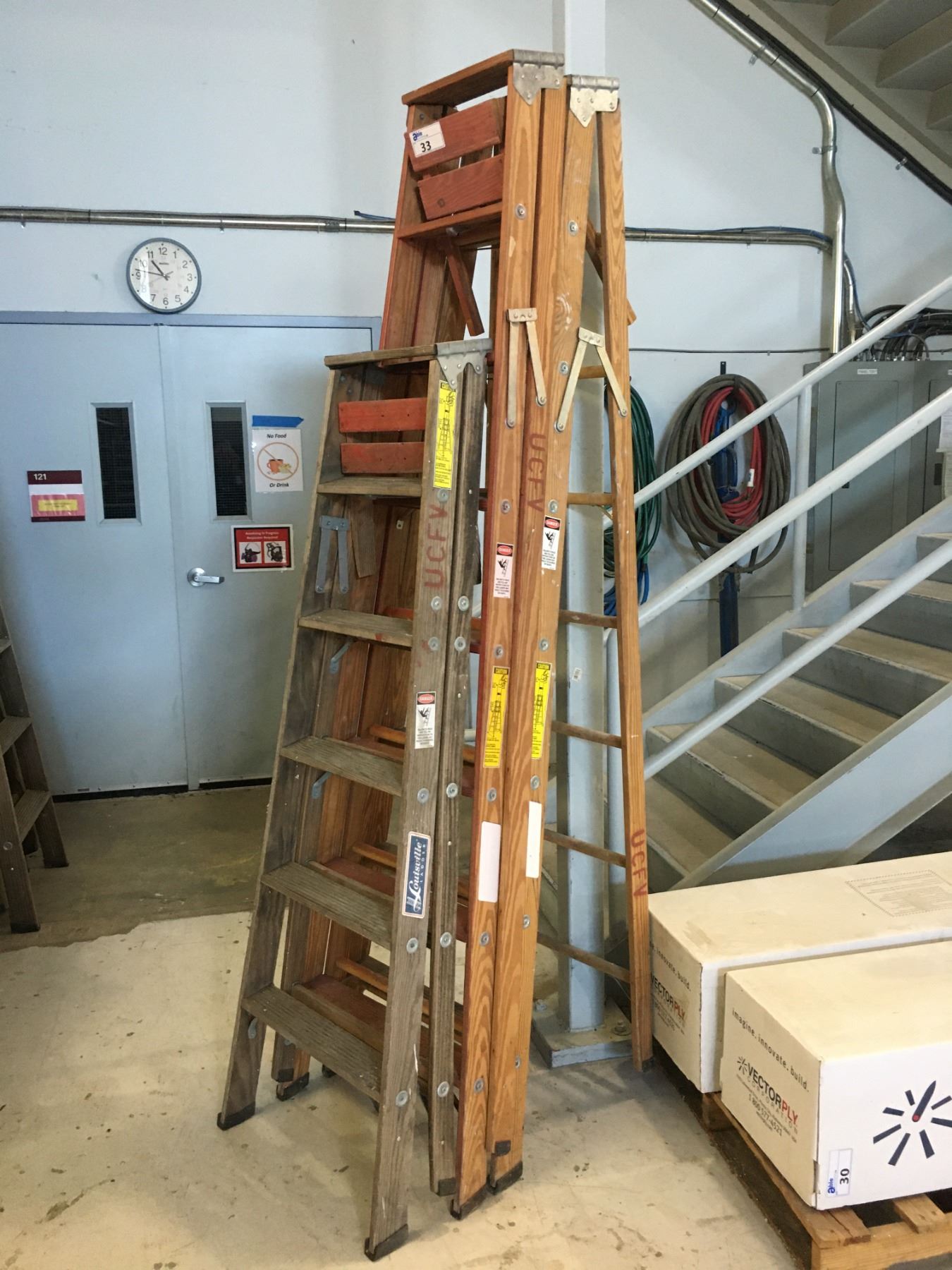 3 WOODEN STEP LADDERS-APPROX.8FT, 8FT & 6FT