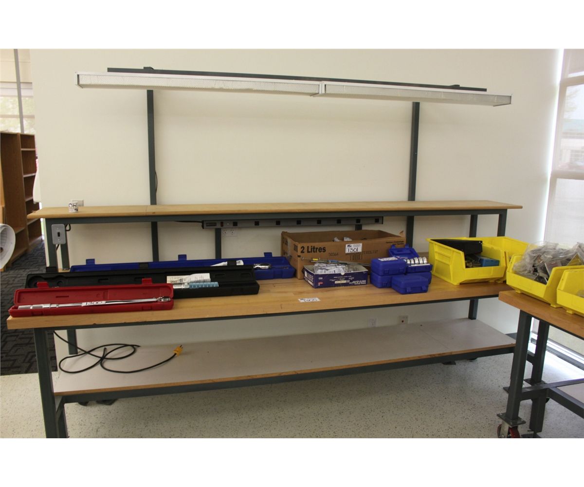 3' X 10' MOBILE LAB BENCH WITH SHELF AND OVERHEAD LIGHT
