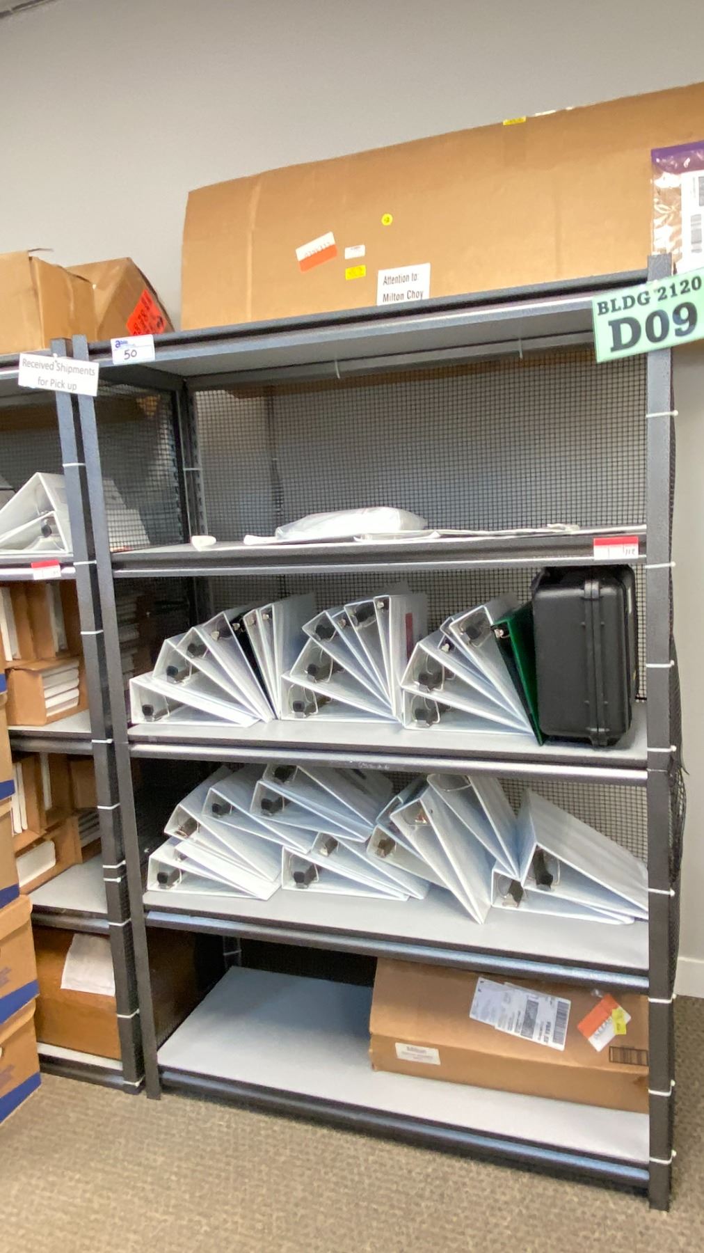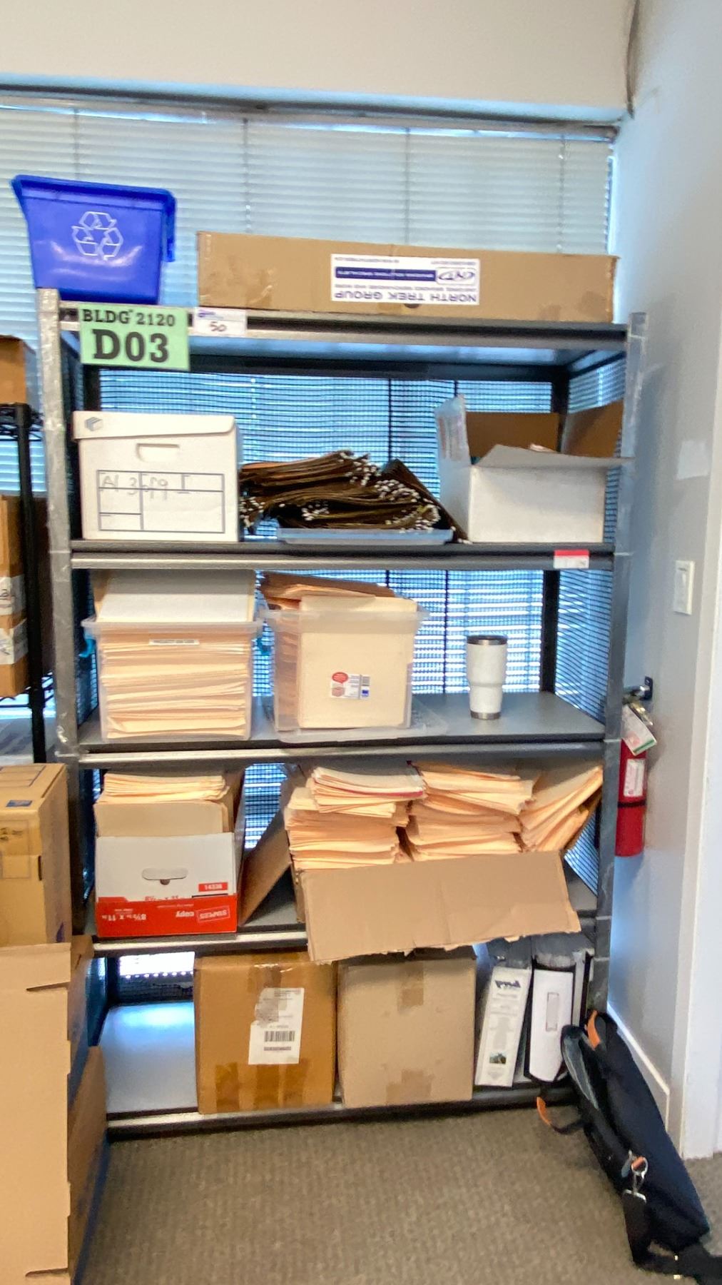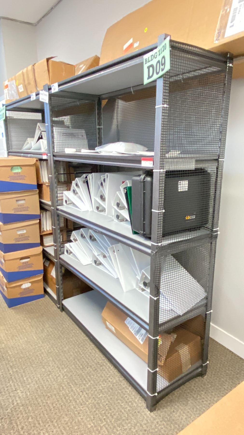 3 X 5 TIER METAL SHELVING UNITS WITH MESH SURROUND APPROX 6' X 4' X 1.5' (CONTENTS NOT INCLUDED)
