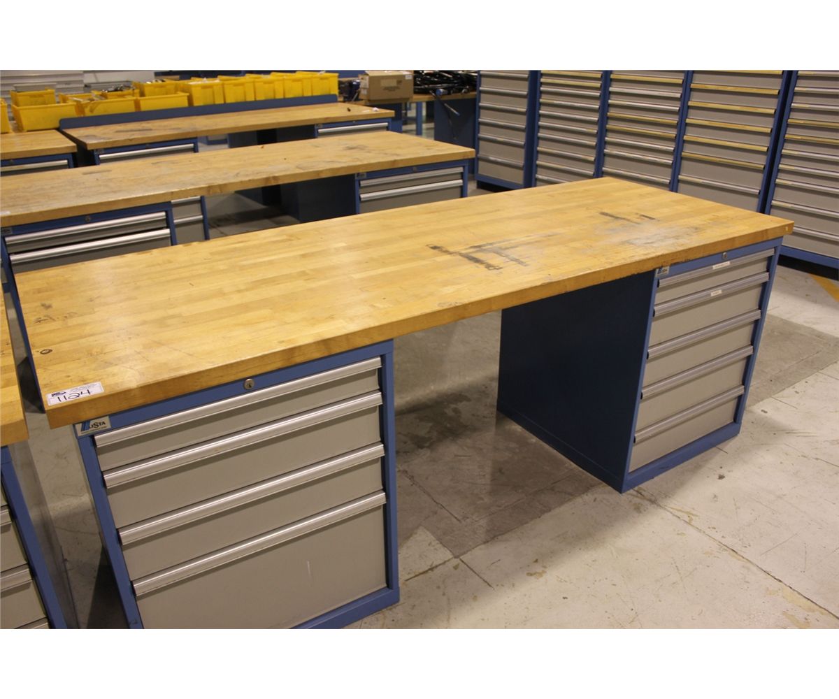 3' X 8' SHOP BENCH WITH 4 DRW AND 5 DRW LISTA PARTS / TOOL CABINETS