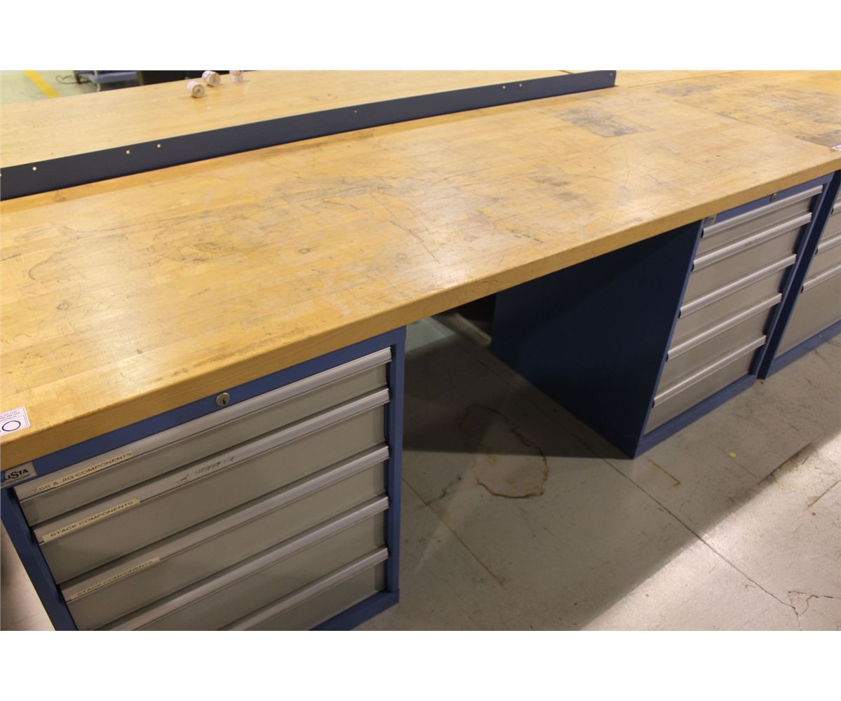 3' X 8' SHOP BENCH WITH 5 DRW AND 5 DRW LISTA PARTS / TOOL CABINETS