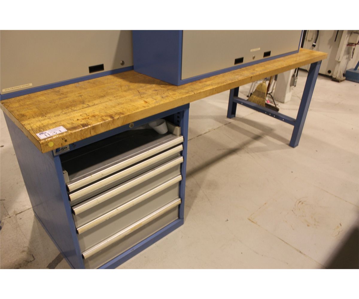 3' X 8' SHOP BENCH WITH 5 DRW LISTA PARTS / TOOL CABINET