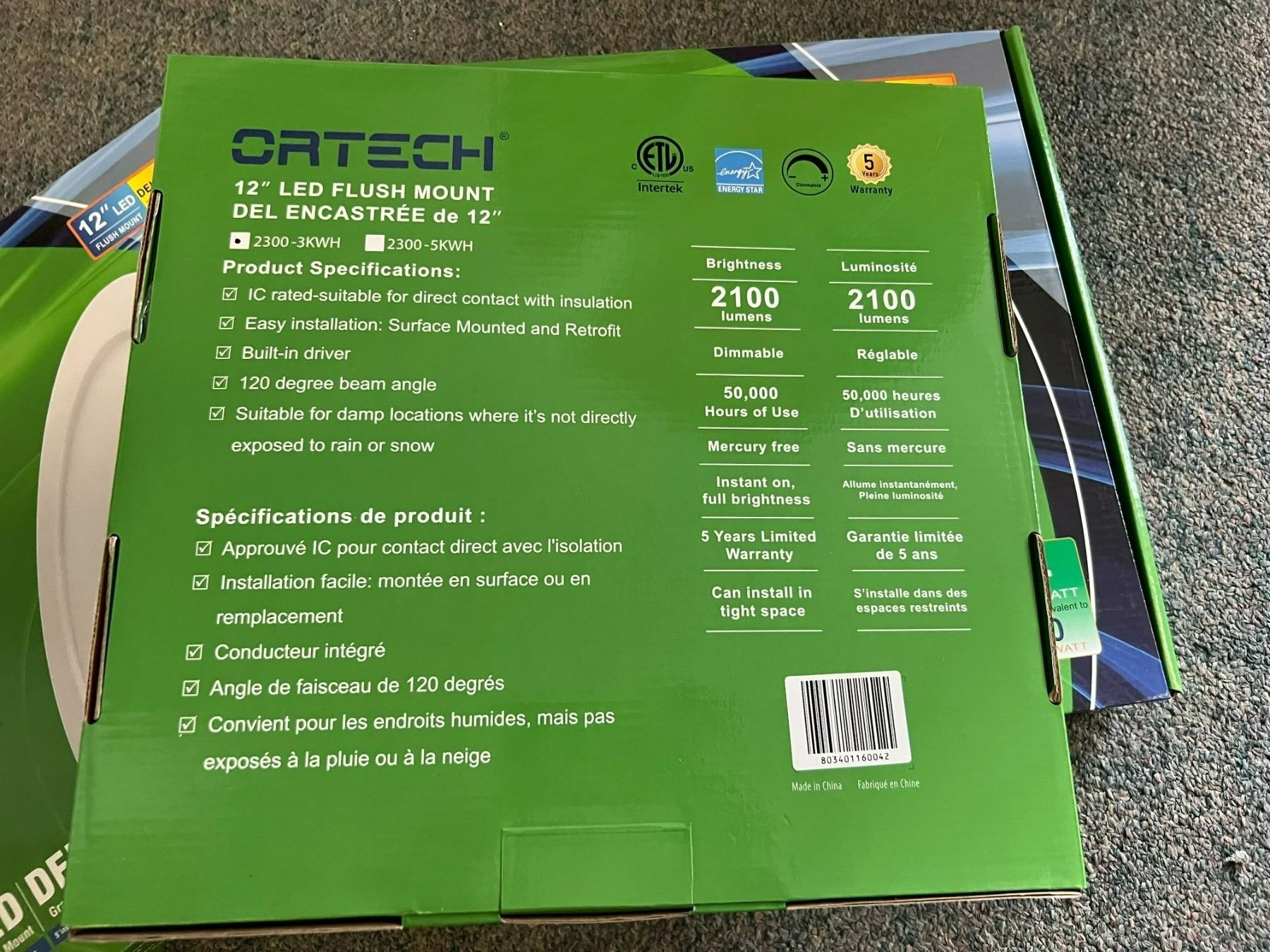 3 X LED LIGHTING ORTECH 2300 12" ROUND 120 VOLT 2100 LUMENS