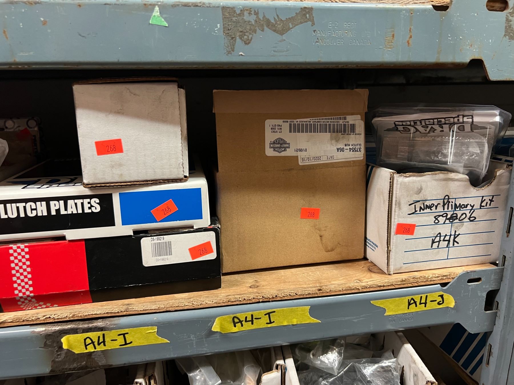 3 X SHELVES ASST'D HARLEY-DAVIDSON HARDWARE - BRAKE SWITCHES, CLUTCH PLATES ETC
