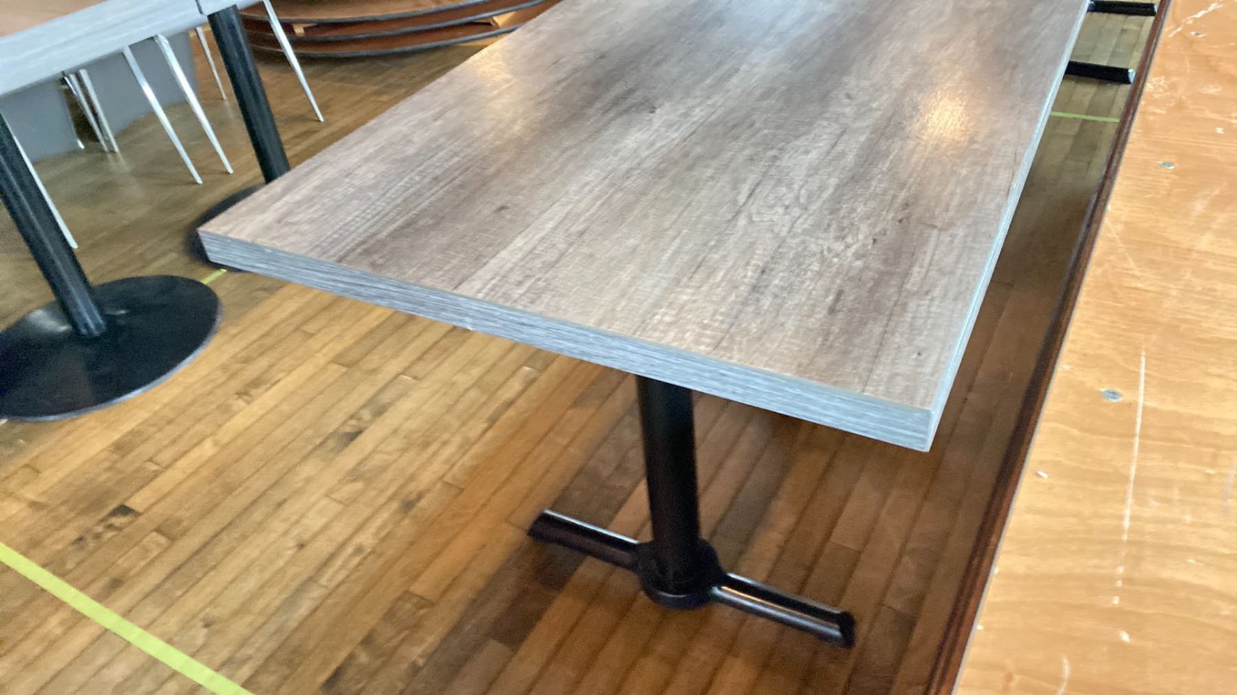 30X48X30"H LAMINATE TABLE WITH METAL LEGS X 2 (ONE HAS A BROKEN LEG)
