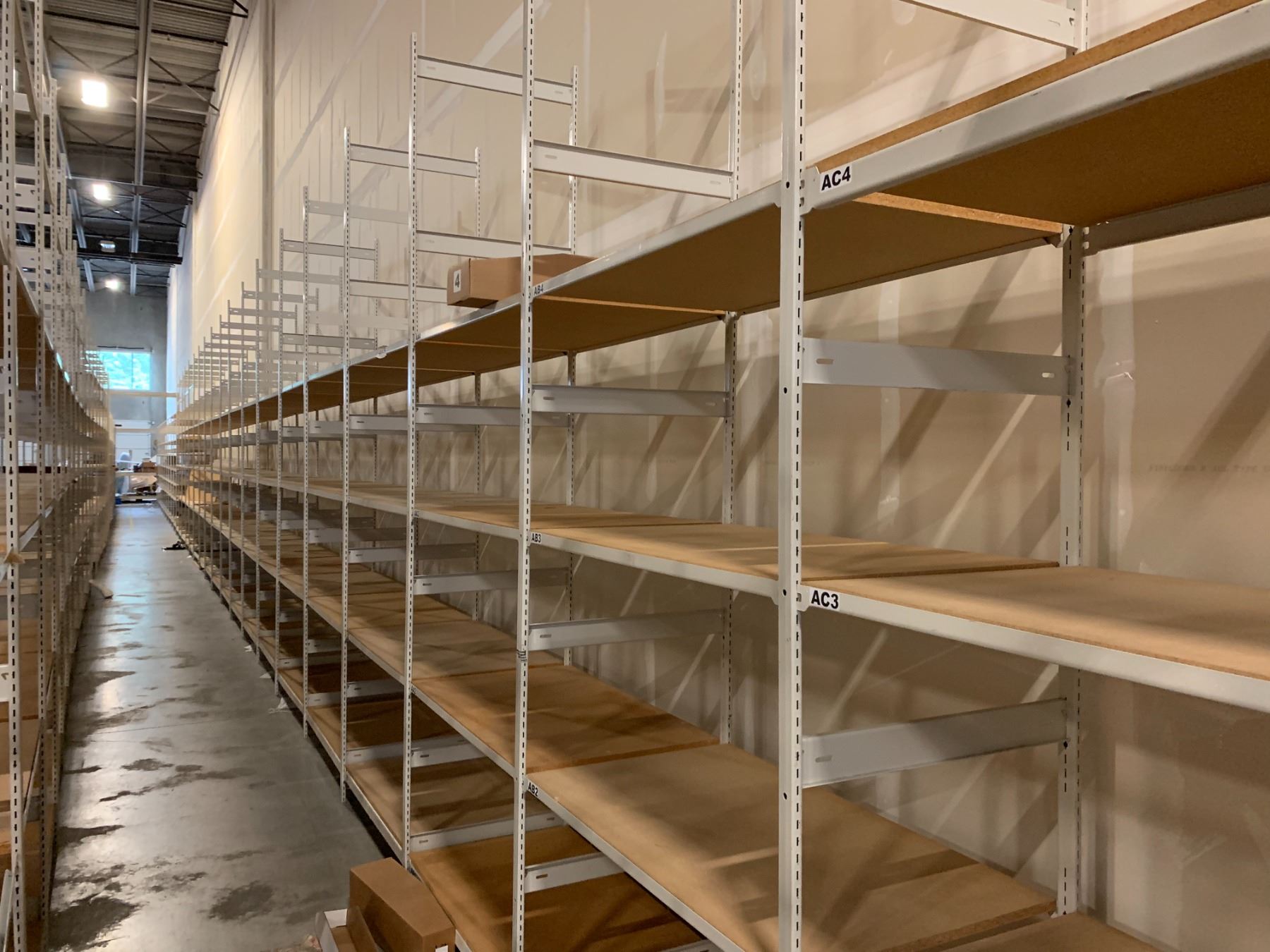34 BAYS OF 10' X 2' PRODUCT STORAGE SHELVING AND REMAINING CONTENTS INCLUDING UPRIGHTS, CROSSBEAMS AND INSERTS *MUST TAKE ALL* *MUST HAVE PROPER EQUIPMENT AND PERSONNEL FOR REMOVAL*