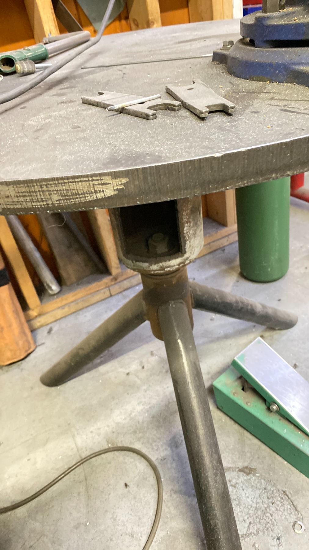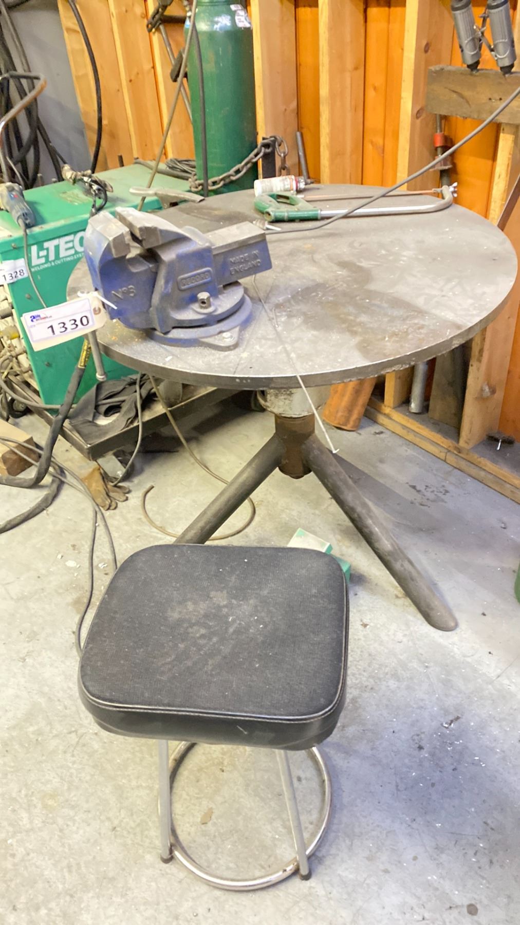 34" X 1" THICK SOLID ROTATING WELDING TABLE WITH 4" VISE. STOOL INC