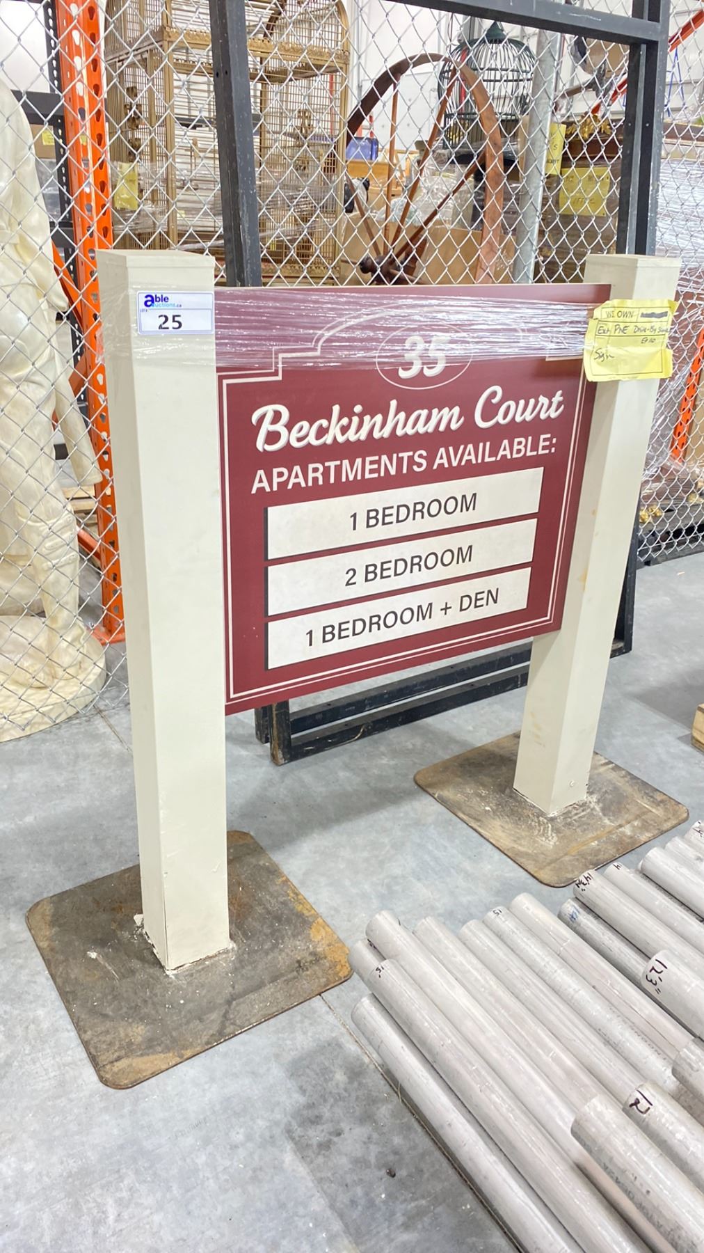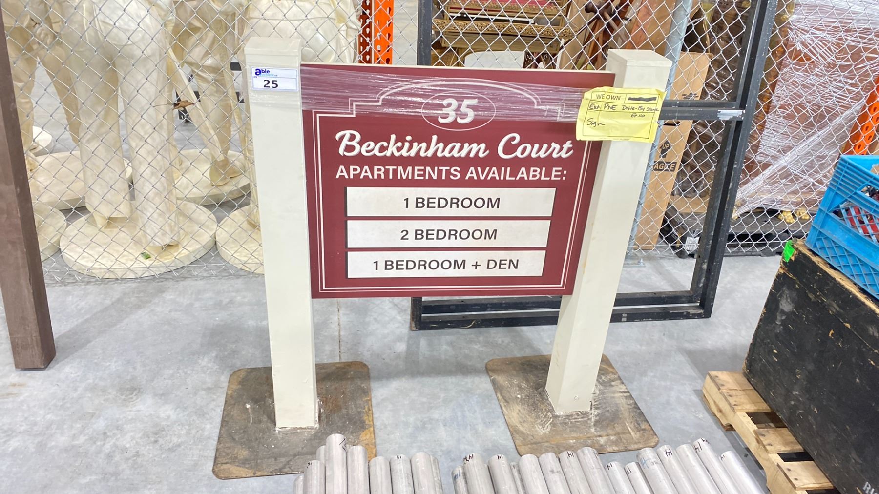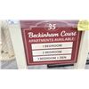 35 BECKINGHAM COURT PROP SIGN WITH METAL BASES 39"L X 4.5"W X 55"H