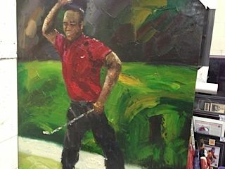 35" X 47" OIL ON CANVAS PAINTING OF TIGER WOODS