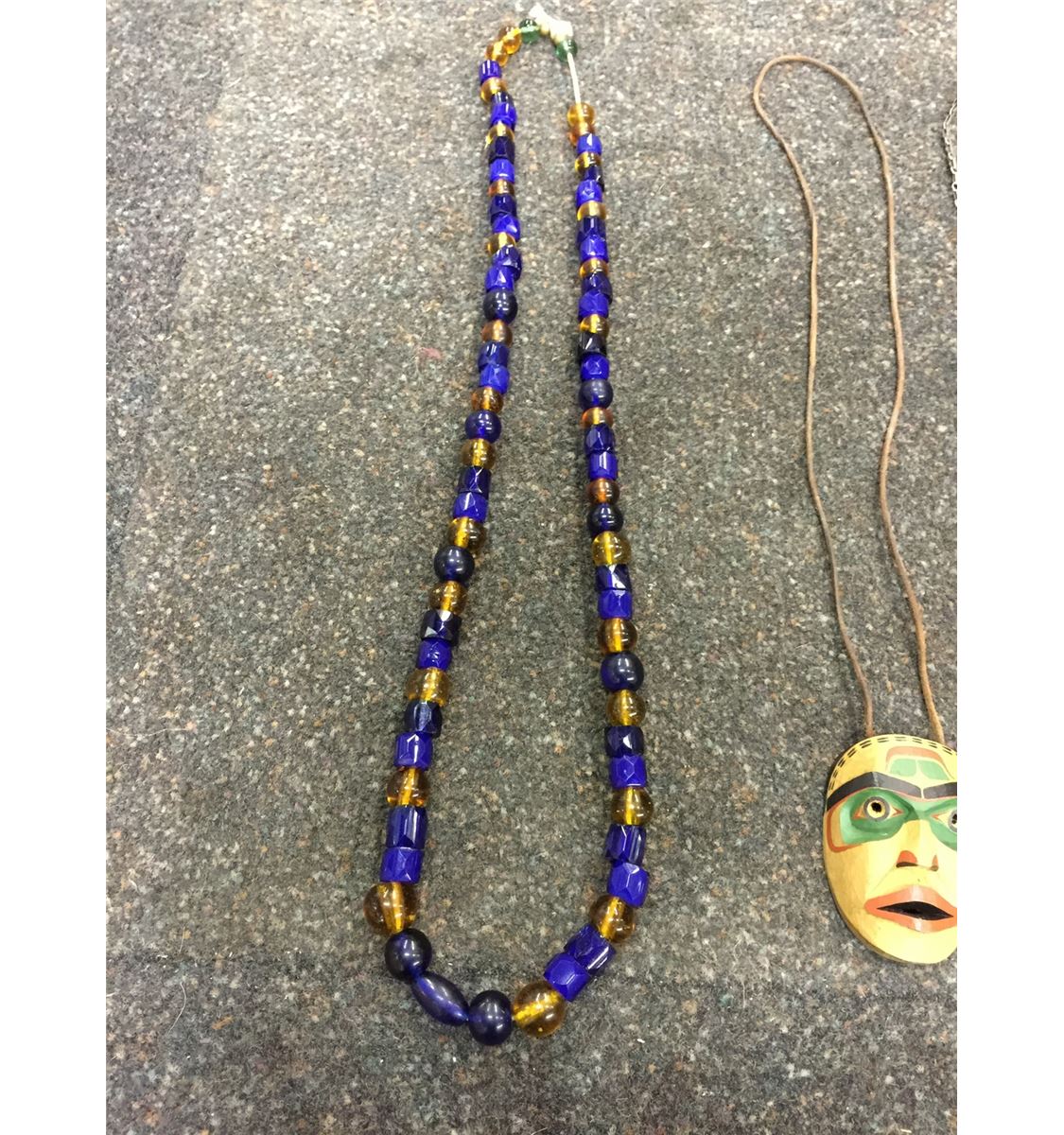 36" TRADE BEAD NECKLACE FROM HUDSON BAY COMPANY SMALL POT, SILVER NATIVE NECKLACE