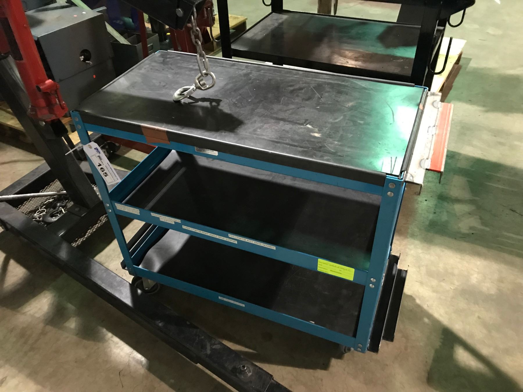 36" X 18" BLUE METAL 3 TIER MOBILE SHOP CART