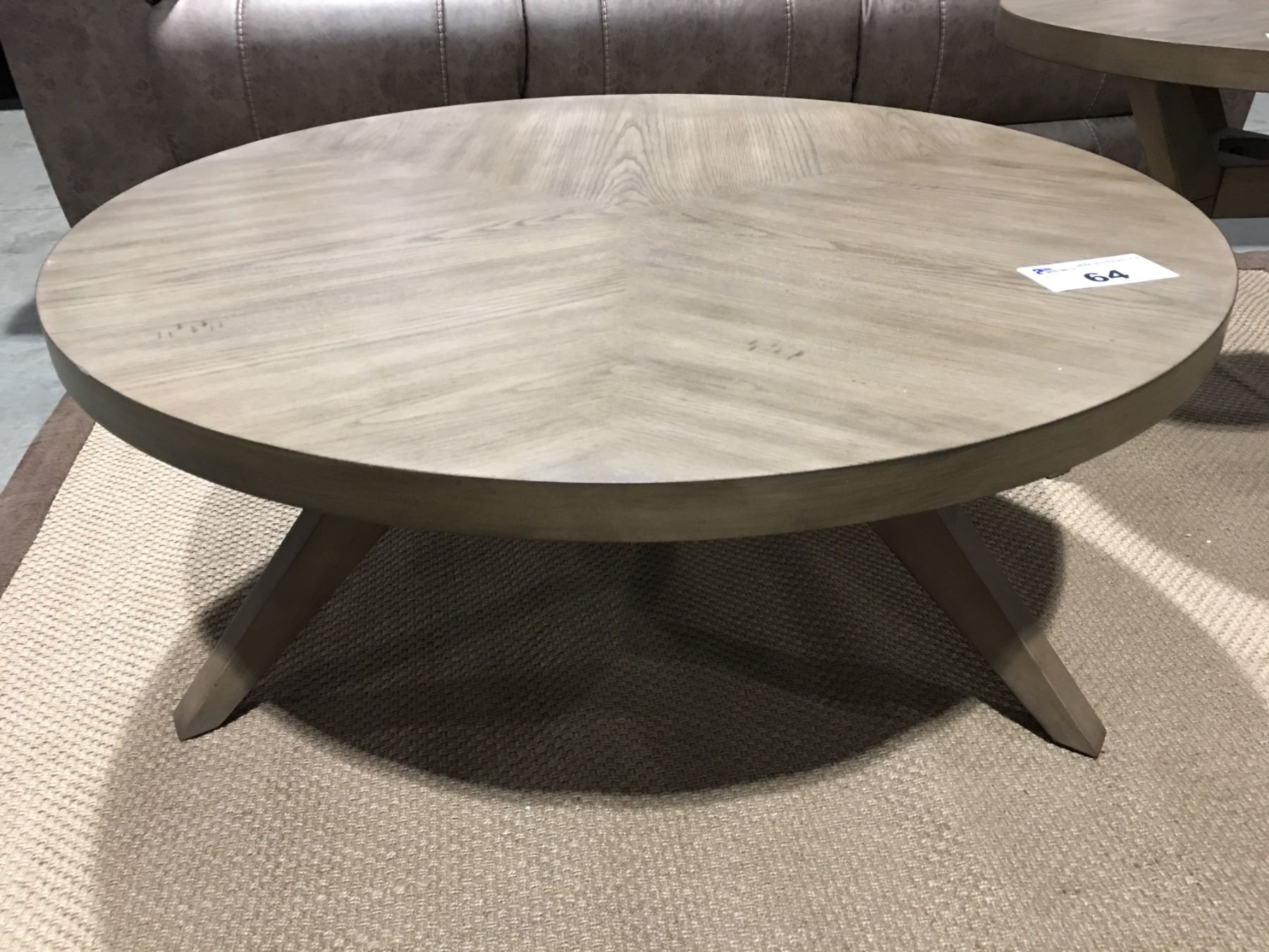 38   ROUND BROWN WOOD GRAIN COFFEE TABLE