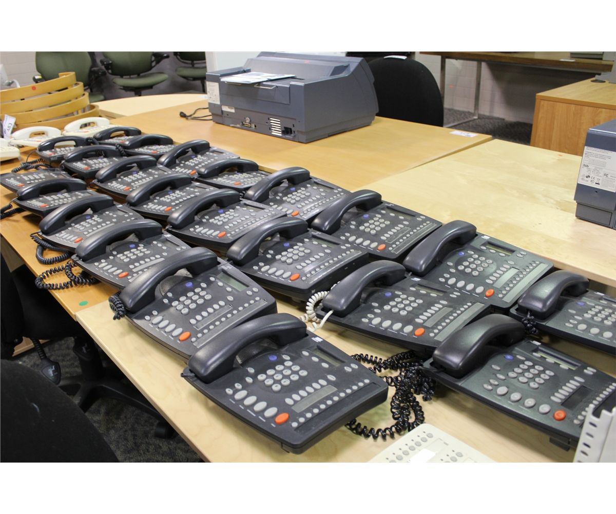 3COM NBX 100 PHONE SYSTEM / 25 HAND SETS AND 3 RECEPTIONS