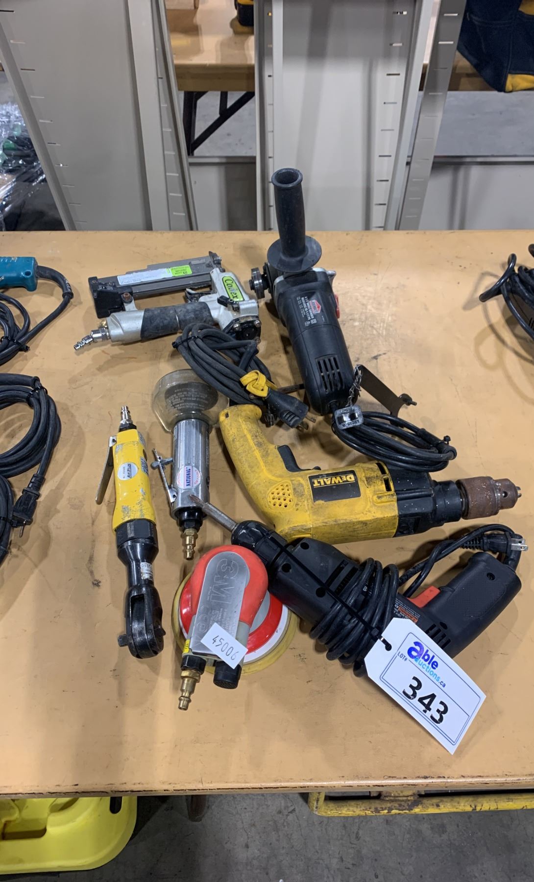 3M RANDOM ORBITAL SANDER ATTACHMENT, DEWALT HAMMER DRILL, PNEUMATIC STAPLER & JOBMATE ANGLE GRINDER