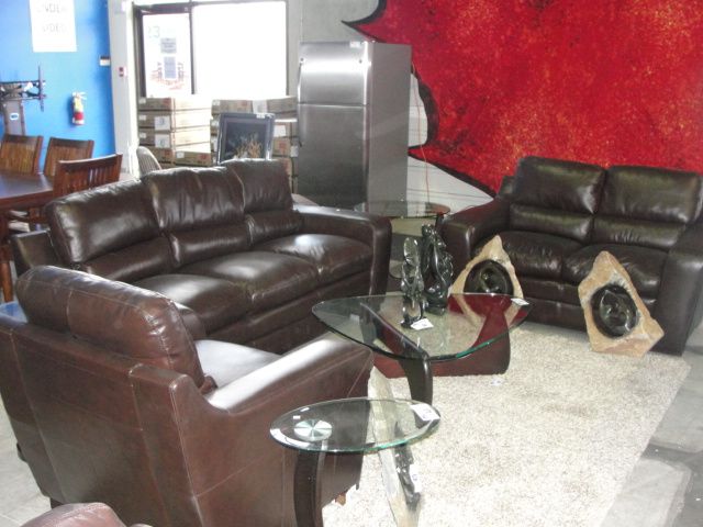 3PC CONTEMPORARY CHOCOLATE BROWN LEATHER SOFA SET; INCLUDES SOFA, LOVESEAT AND CHAIR