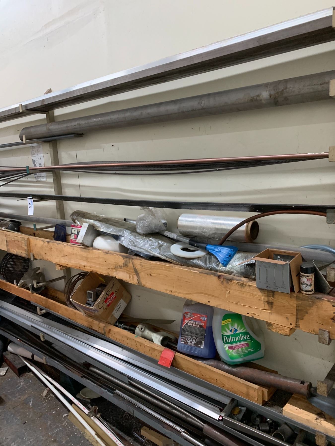 3PC METAL WALLMOUNT RACK SYSTEM WITH ASSORTED METAL AND MISCELLANEOUS ITEMS