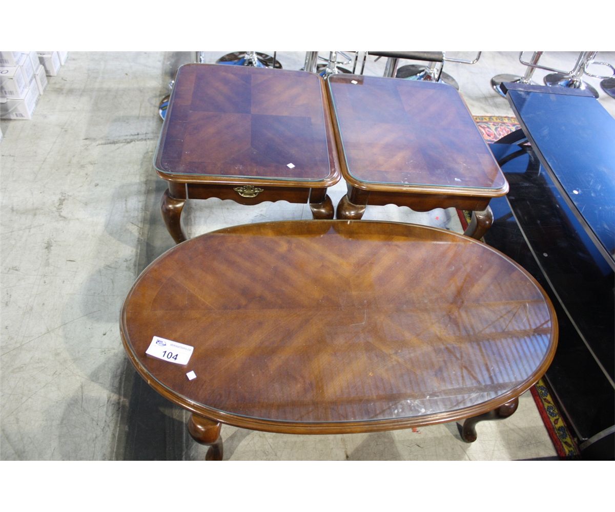 3PC QUEEN ANNE STYLE COFFEE TABLE AND END TABLE SET WITH GLASS TOPS