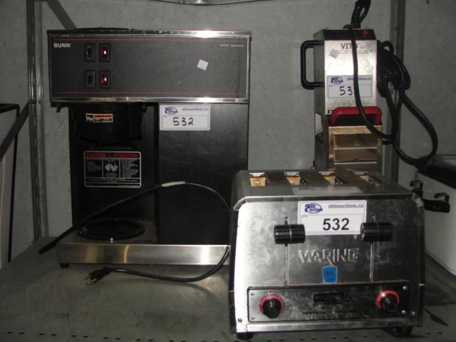 3PCS OF COMMERCIAL RESTAURANT EQUIPMENT; COFFEE MAKER, TOASTER AND VETO OIL FILTER SYSTEM