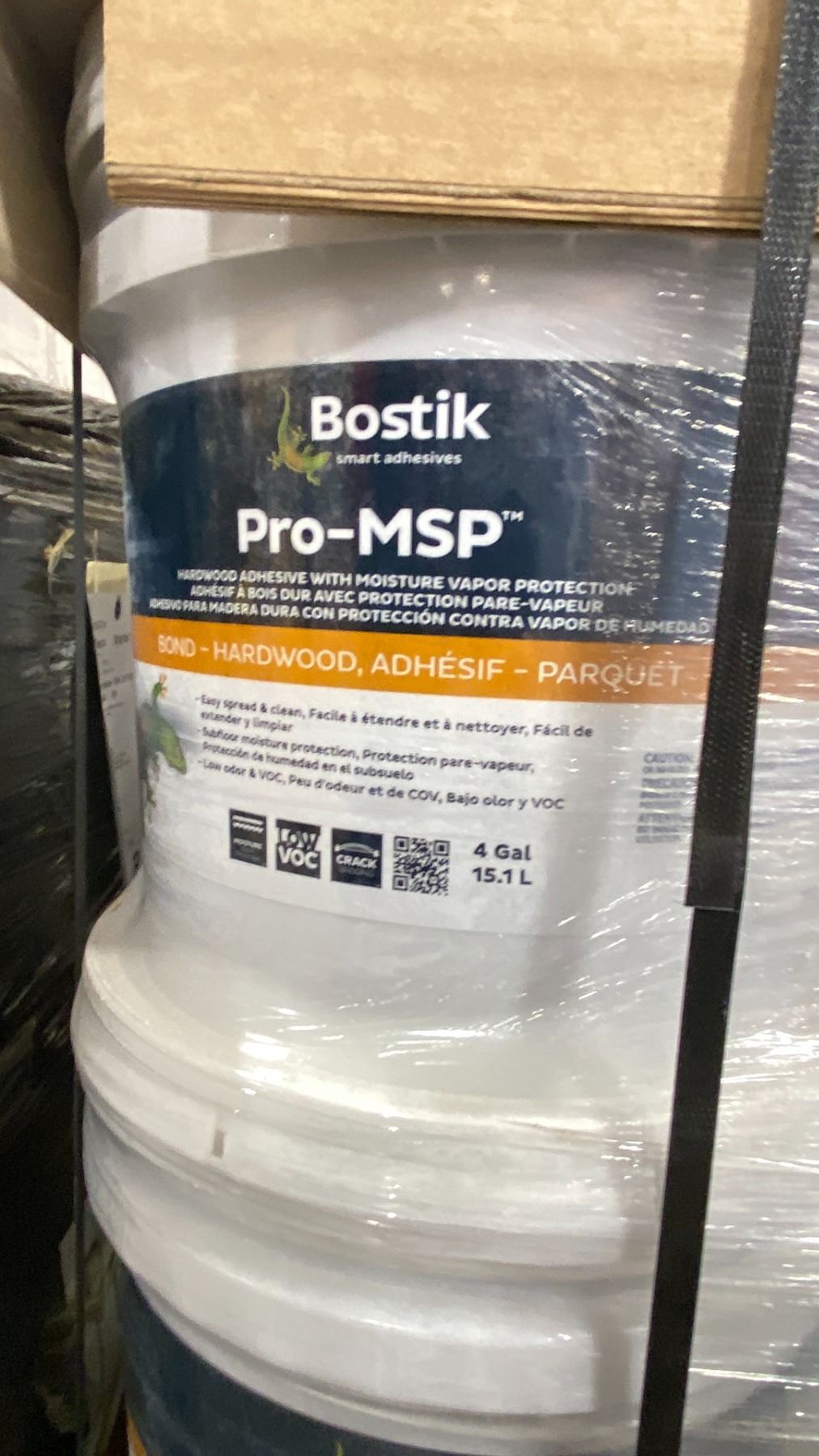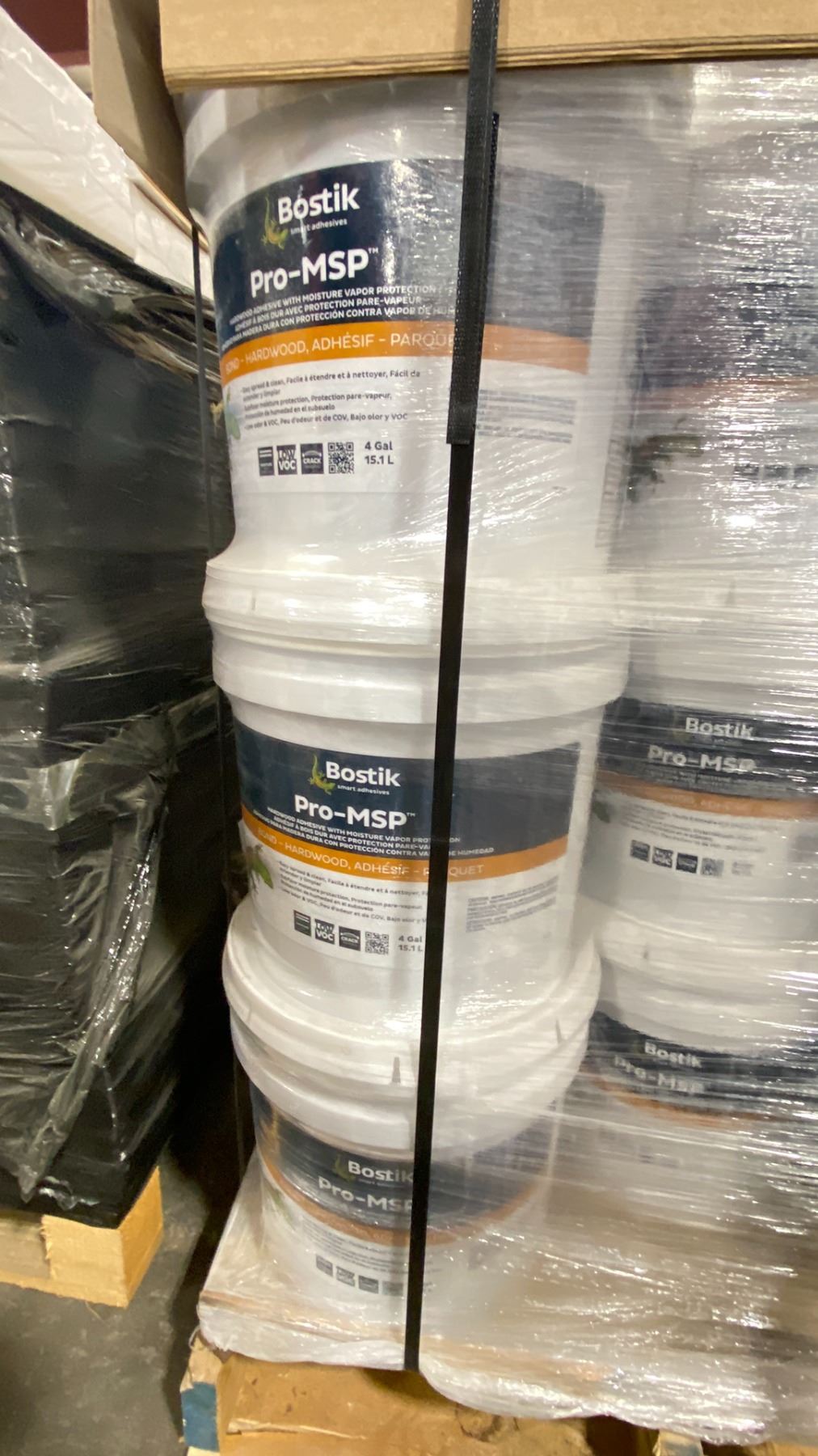 3X 4 GALLON PALES OF BOSTIK PRO-MSP COMMERCIAL HARDWOOD ADHESIVE
