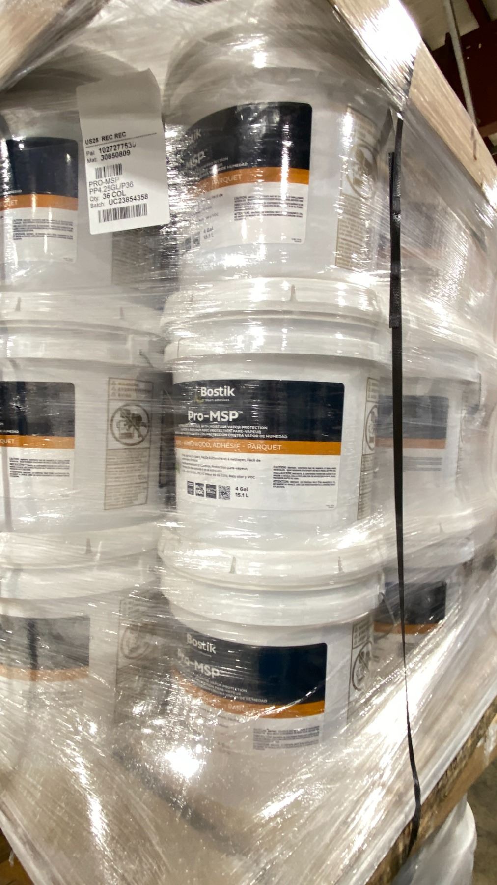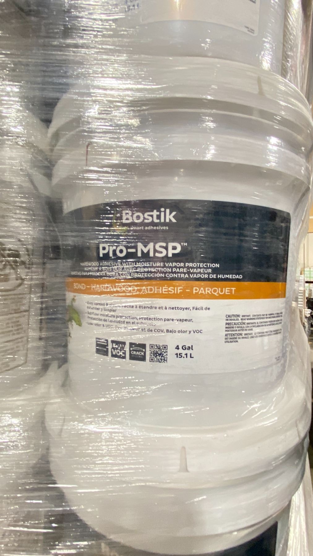 3X 4 GALLON PALES OF BOSTIK PRO-MSP COMMERCIAL HARDWOOD ADHESIVE