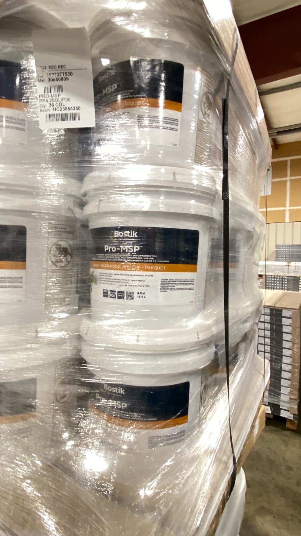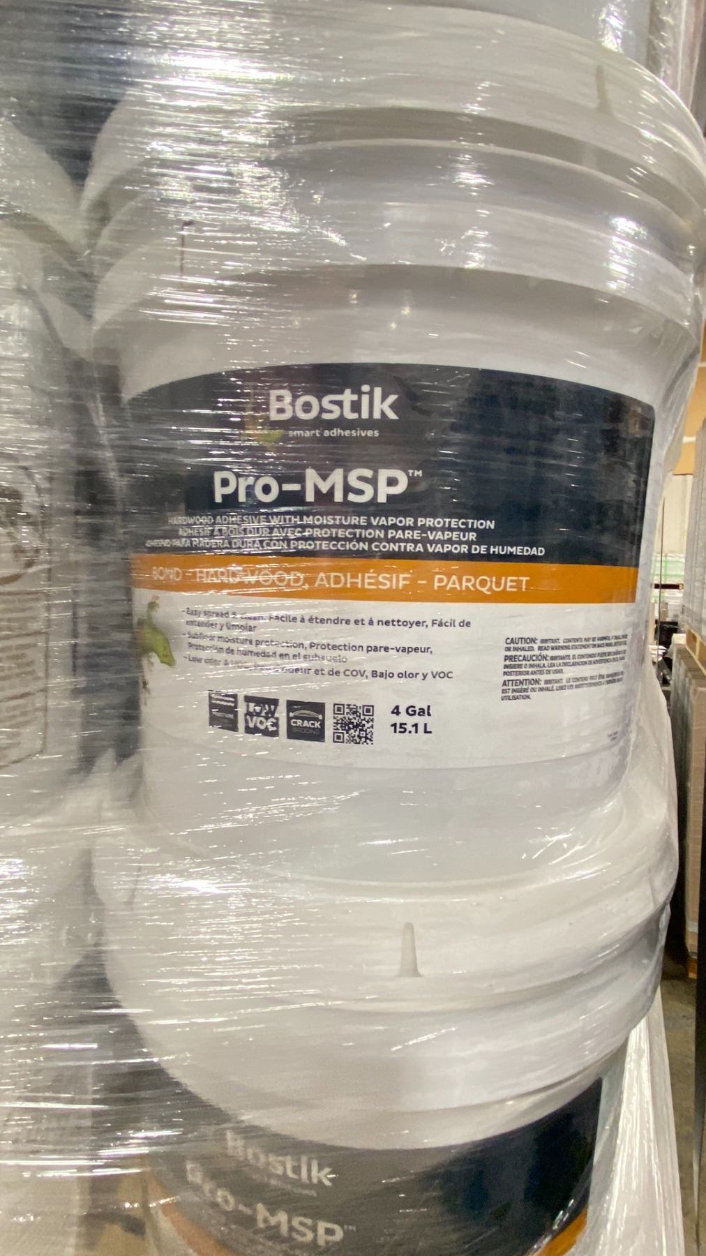 3X 4 GALLON PALES OF BOSTIK PRO-MSP COMMERCIAL HARDWOOD ADHESIVE