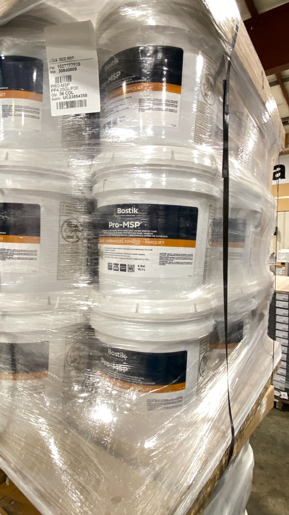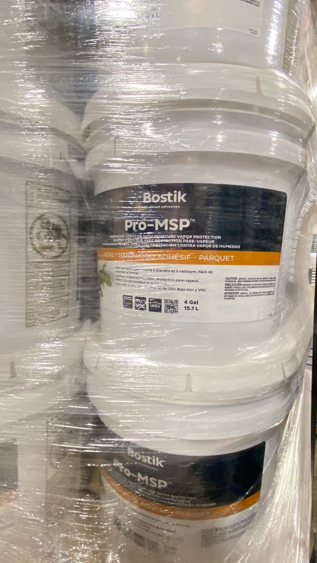 3X 4 GALLON PALES OF BOSTIK PRO-MSP COMMERCIAL HARDWOOD ADHESIVE