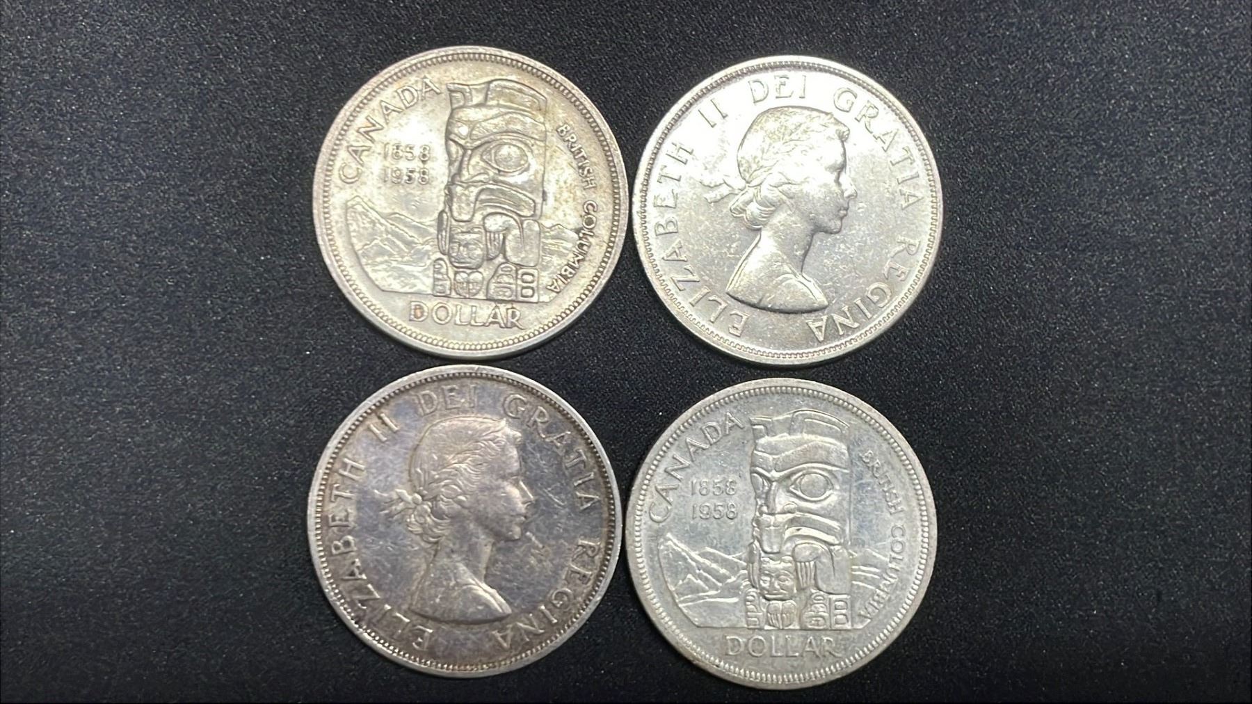 (4) 1958 CANADIAN $1 SILVER DOLLARS