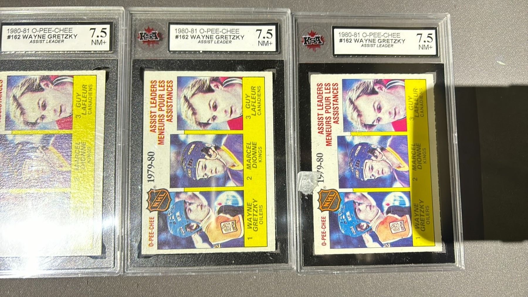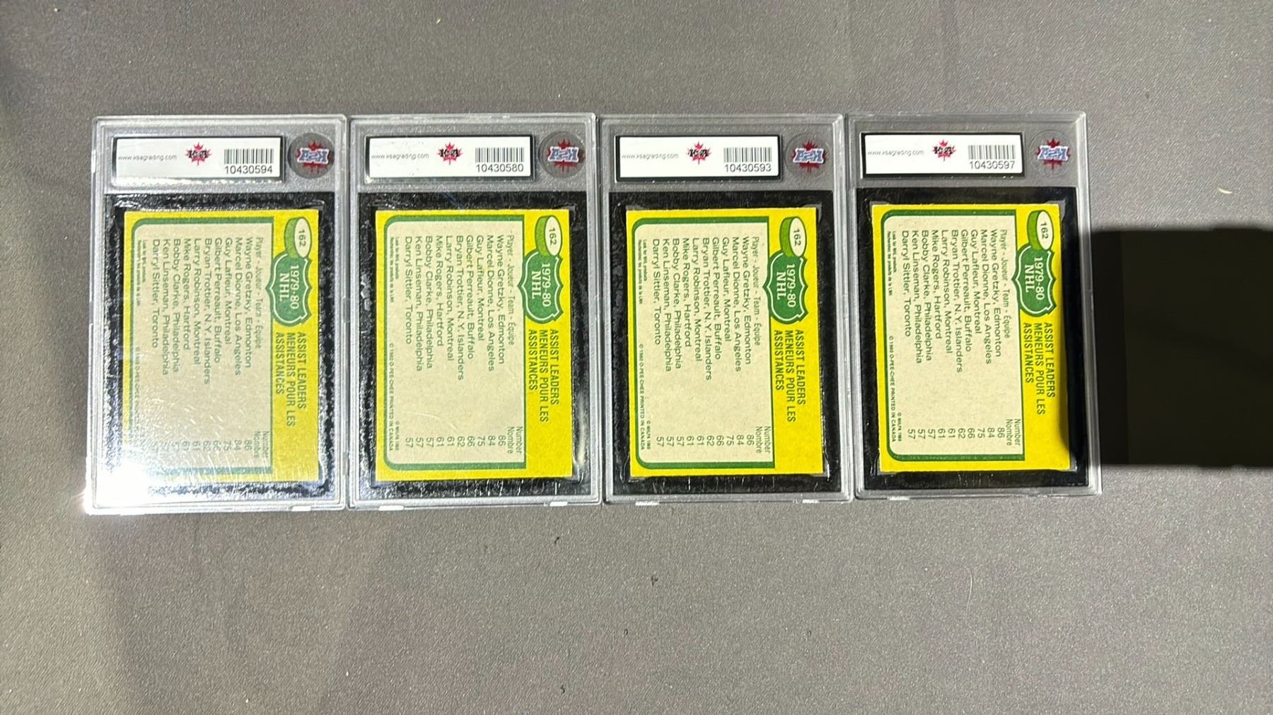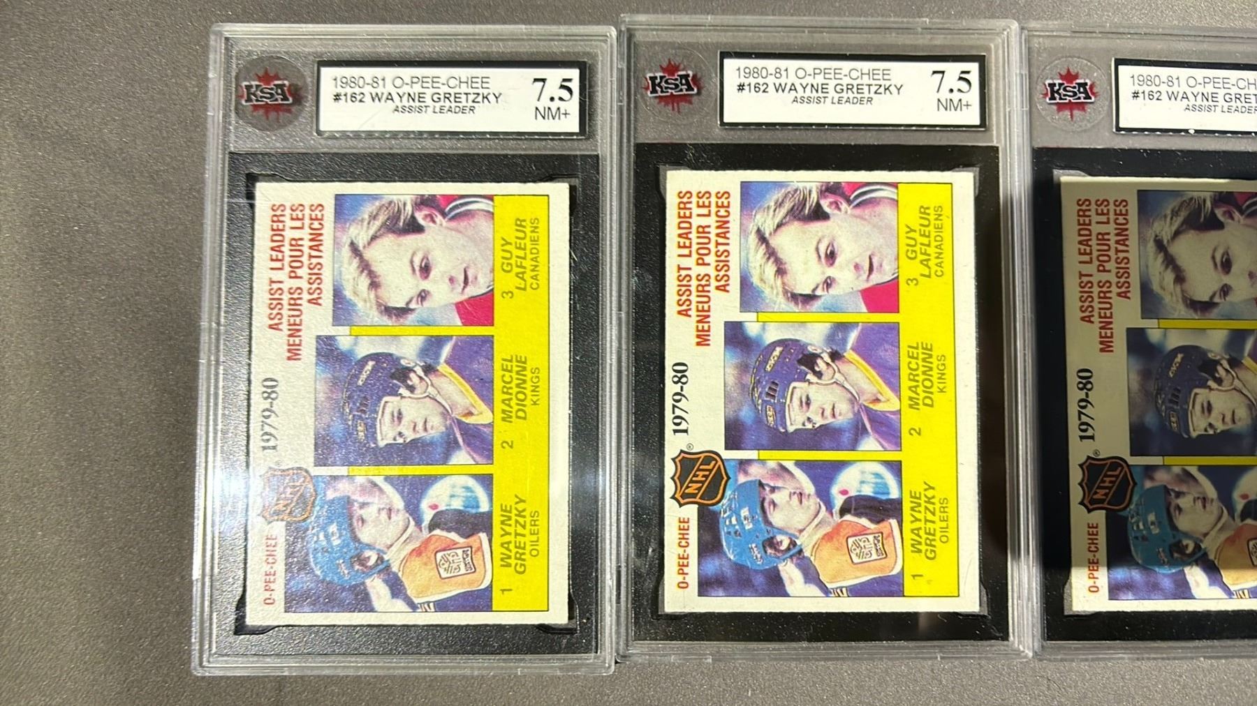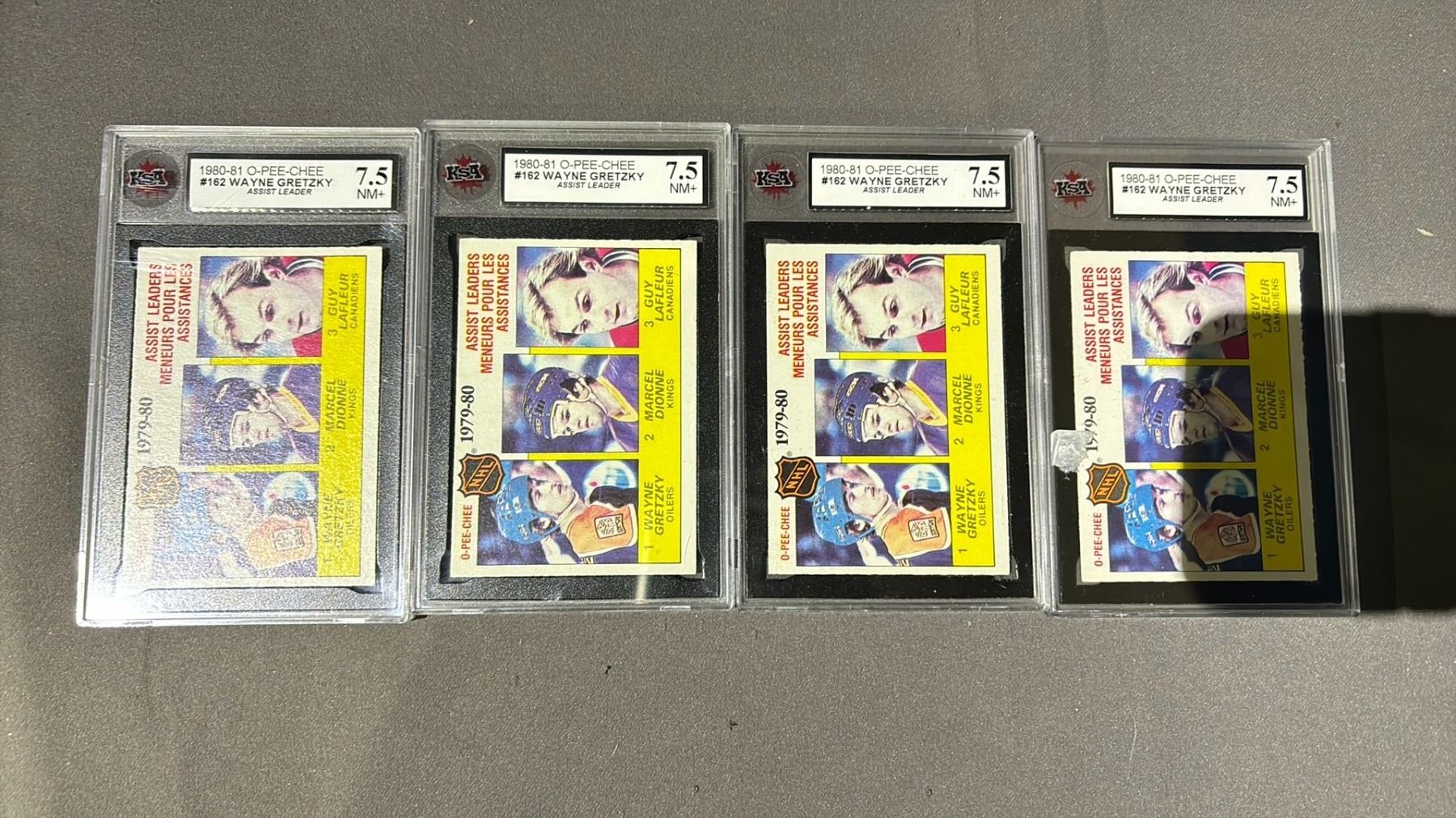 4 1980-1981 O-PEE-CHEE WAYNE GRETZKY ASSIST LEADER #162, KSA GRADED 7.5NM+