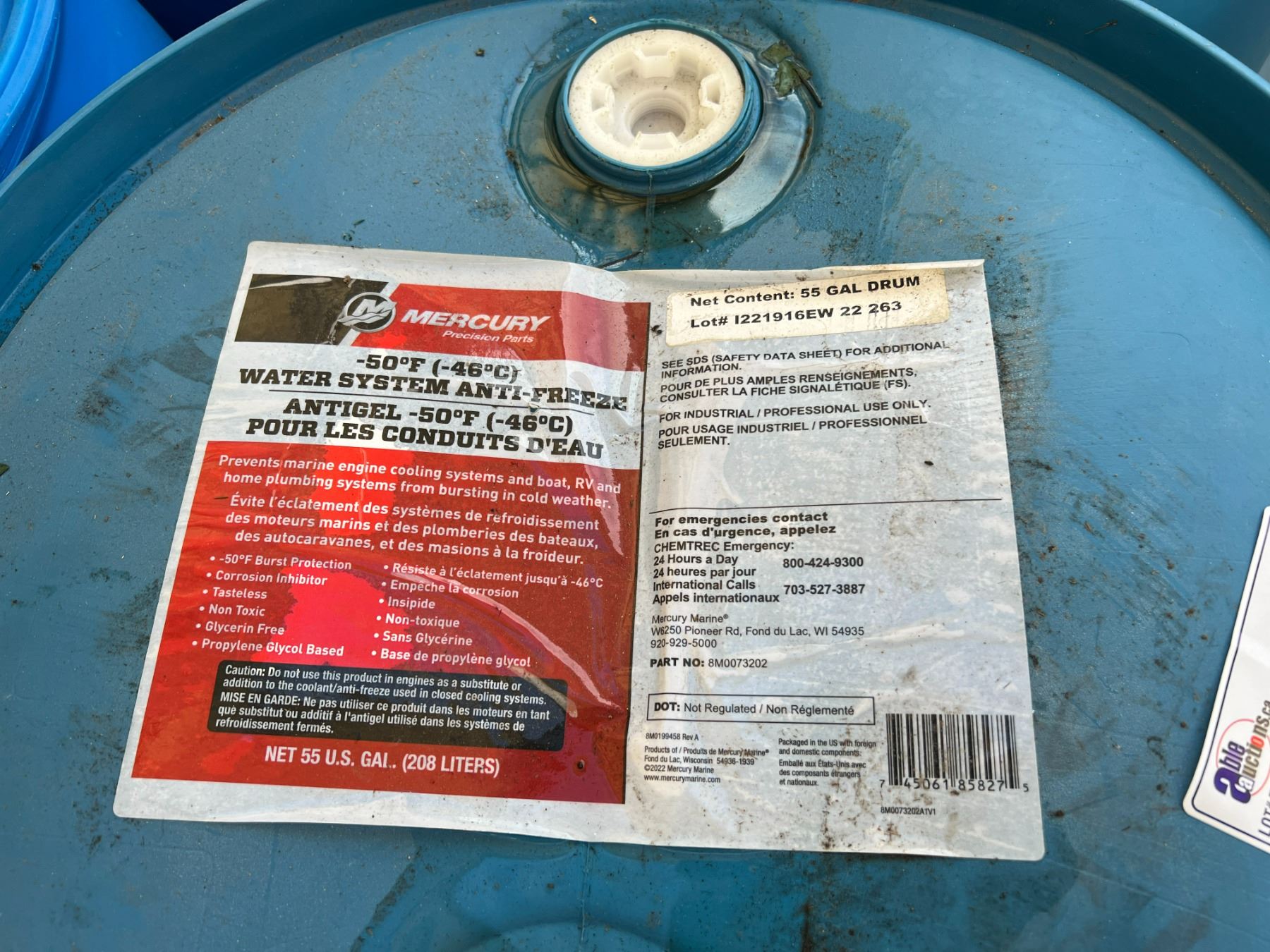 4 - 208 LITRE BARRELS OF MERCURY -46 DEGREE CELSIUS WATER SYSTEM ANTI-FREEZE
