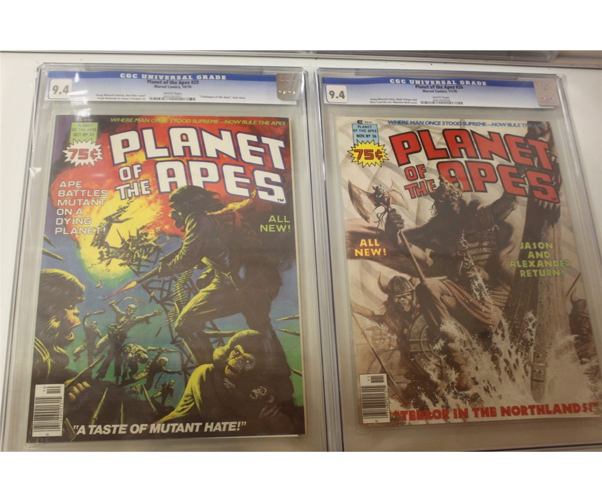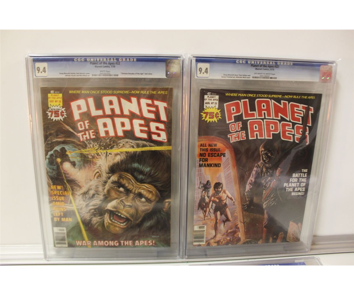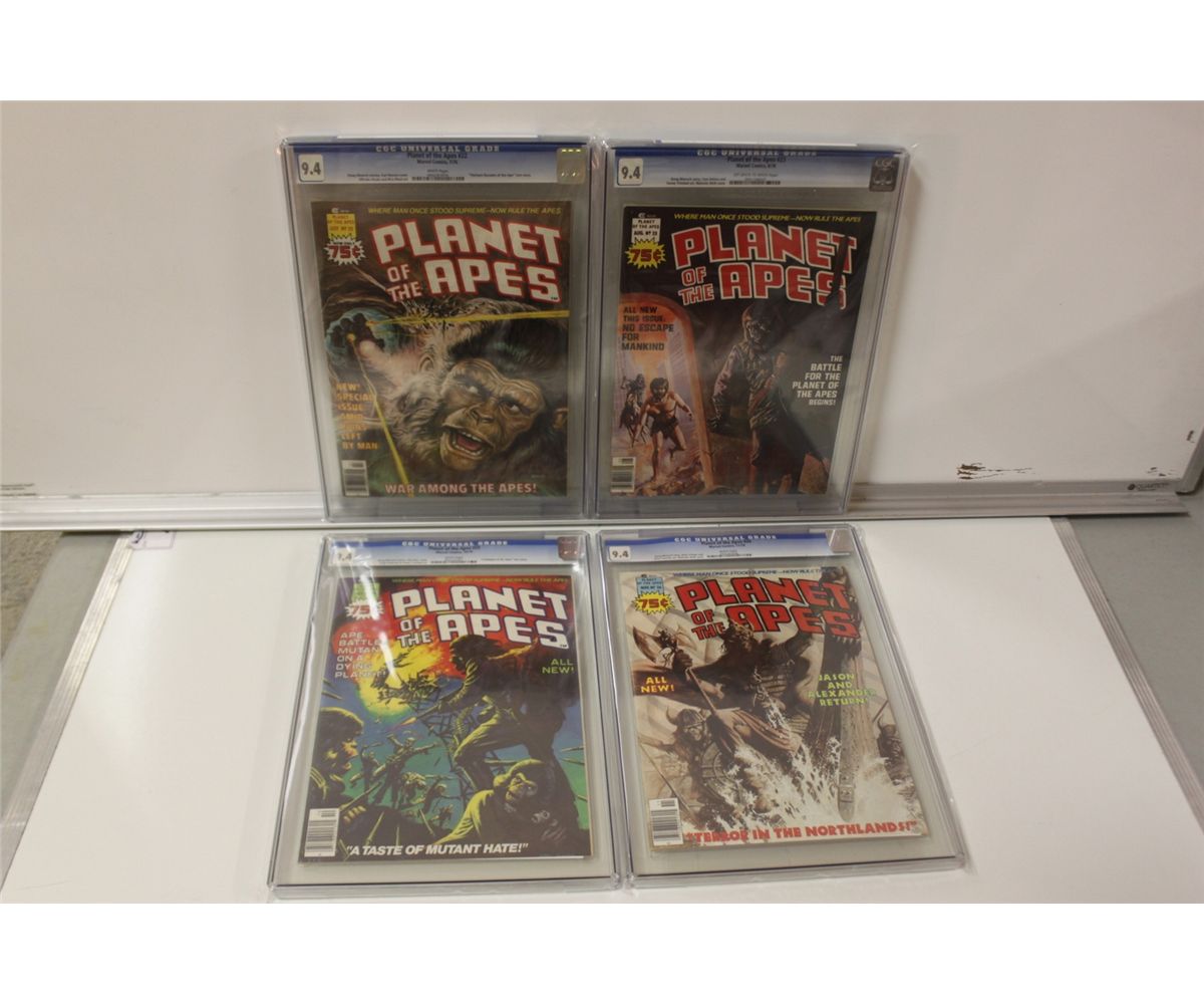 4 - 9.4 CGC PLANET OF THE APES LOW DISTRIBUTION #'S.  #22 CGC 9.4 (NM) WHITE PAGES (7/76), #23 CGC 9.4 (NM) OFF-WHITE TO WHITE PAGES (8/76), #25 CGC 9.4 (NM) WHITE PAGES (10/76), #26 CGC 9.4 (NM) WHITE PAGES (11/76) *ALL 4 COPIES ARE EACH THE 2ND HIGHEST GRADED ON THE PLANET.  *HARDLY ANY LOW PRINT #20'S EXIST ON THE CGC CENSUS.