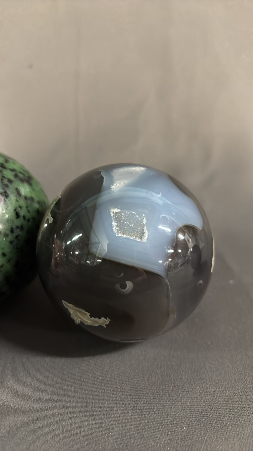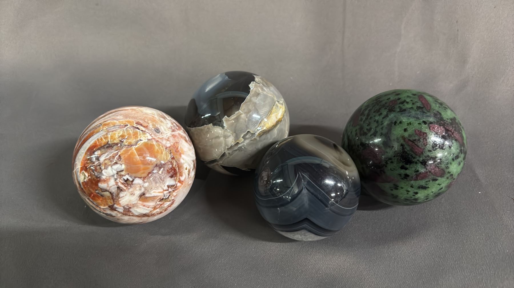 (4) ASSORTED AGATE SPHERES: SIZES RANGE 2" - 2.5" DIAMETER