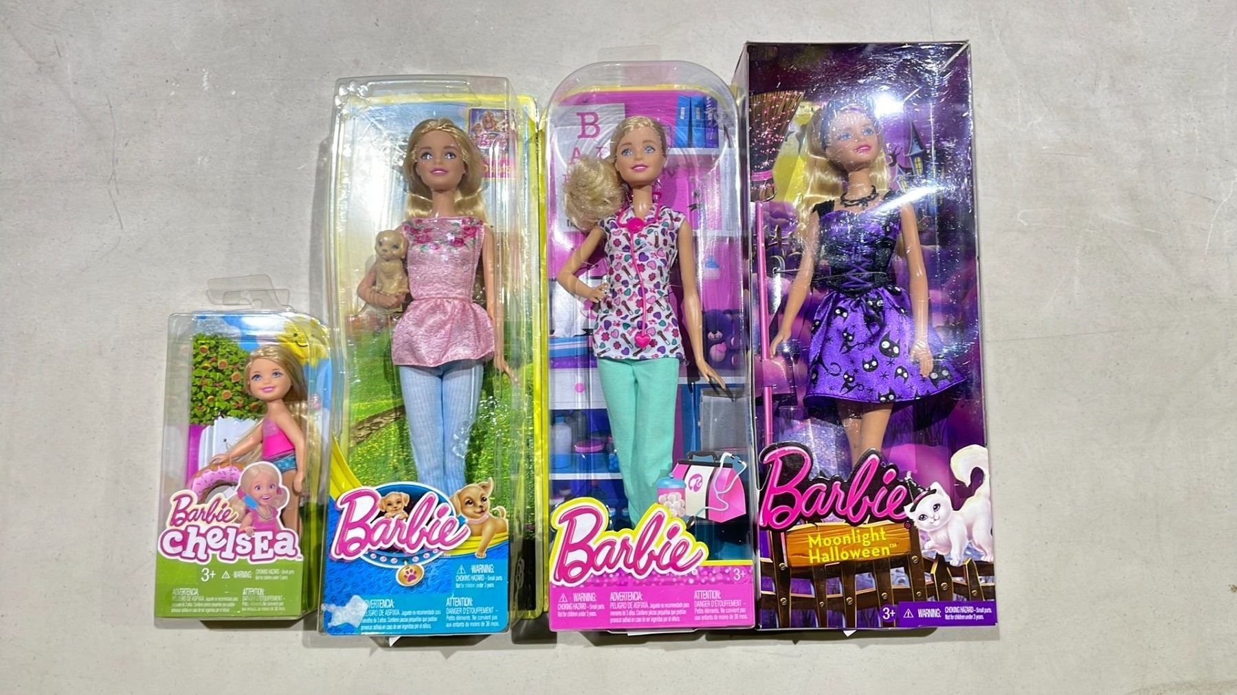 4 ASSORTED BARBIE DOLLS INCLUDING; CHELSEA, NURSE, MOONLIGHT HALLOWEEN & MORE