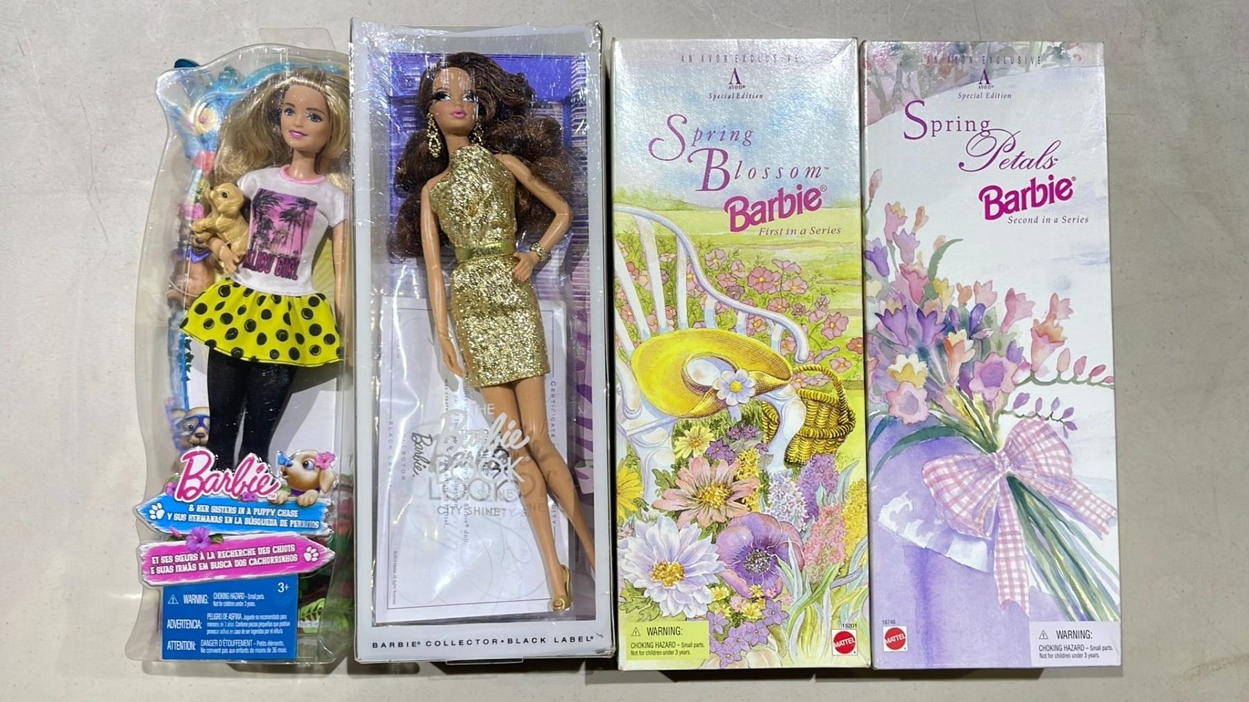 4 ASSORTED BARBIE DOLLS INCLUDING; THE BARBIE LOOK CITY SHINE, BARBIE & HER SISTERS IN A PUPPY CHASE, SPRING BLOSSOM & SPRING PETALS