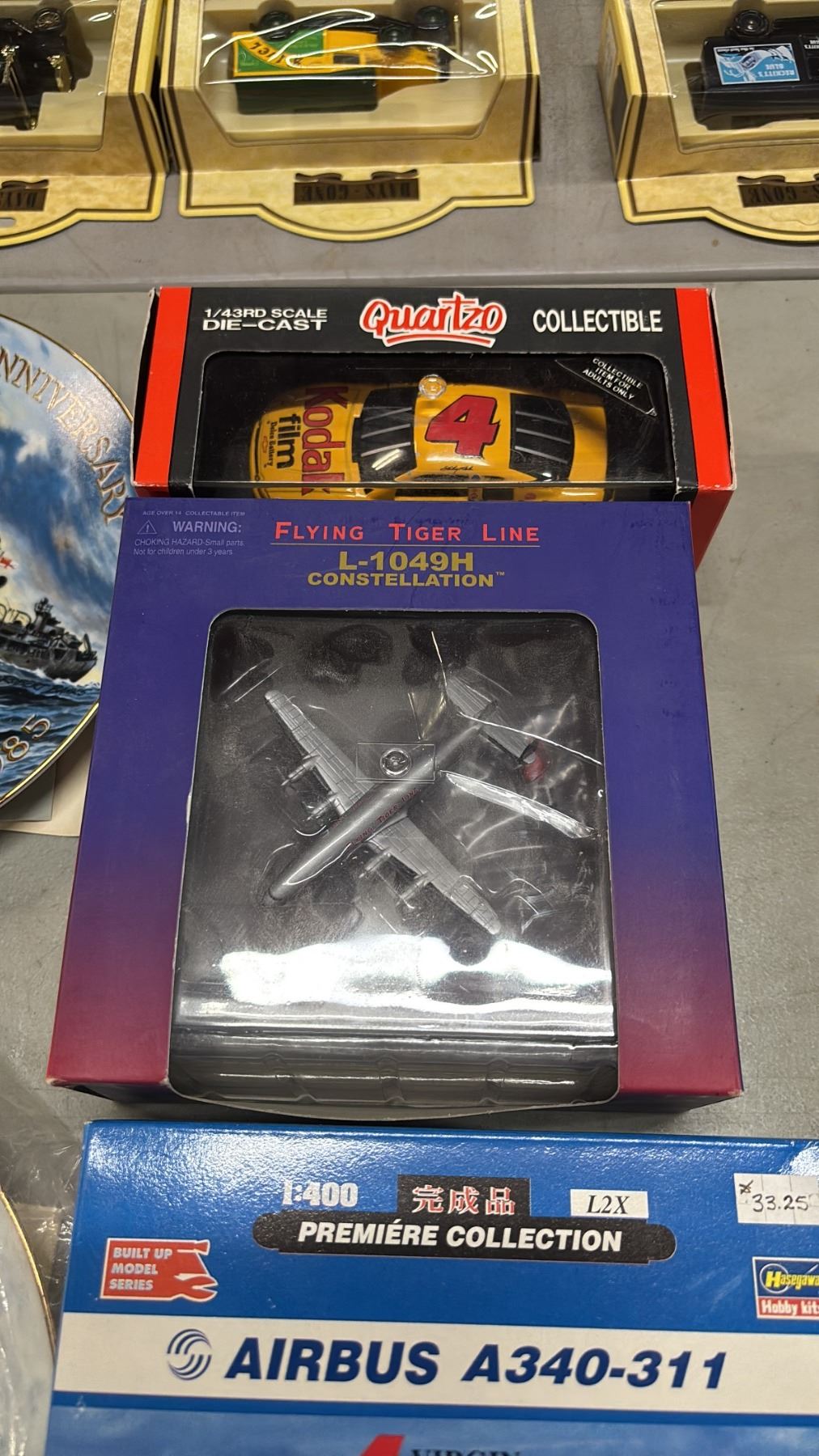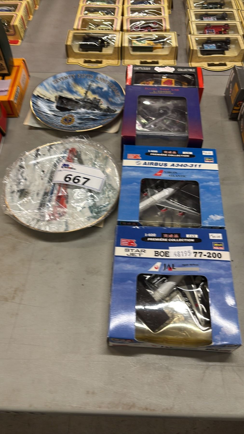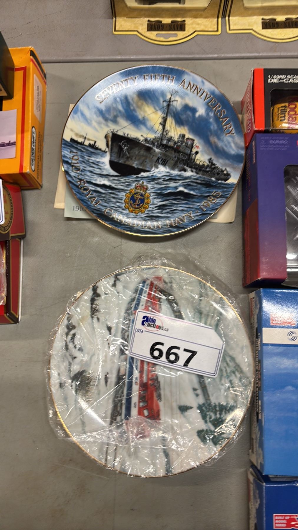 (4) ASSORTED DIECAST SCALE MODEL VEHICLES & (2) DECORATIVE COLLECTOR PLATES