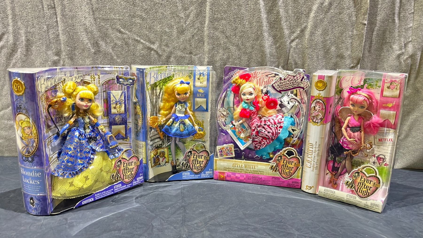 4 ASSORTED EVER AFTER HIGH DOLLS INCLUDING; C.A. CUPID, BLONDIE LOCKS & APPLE WHITE