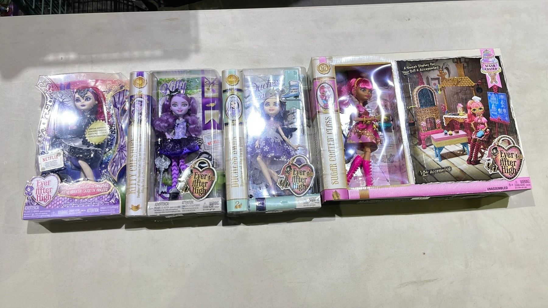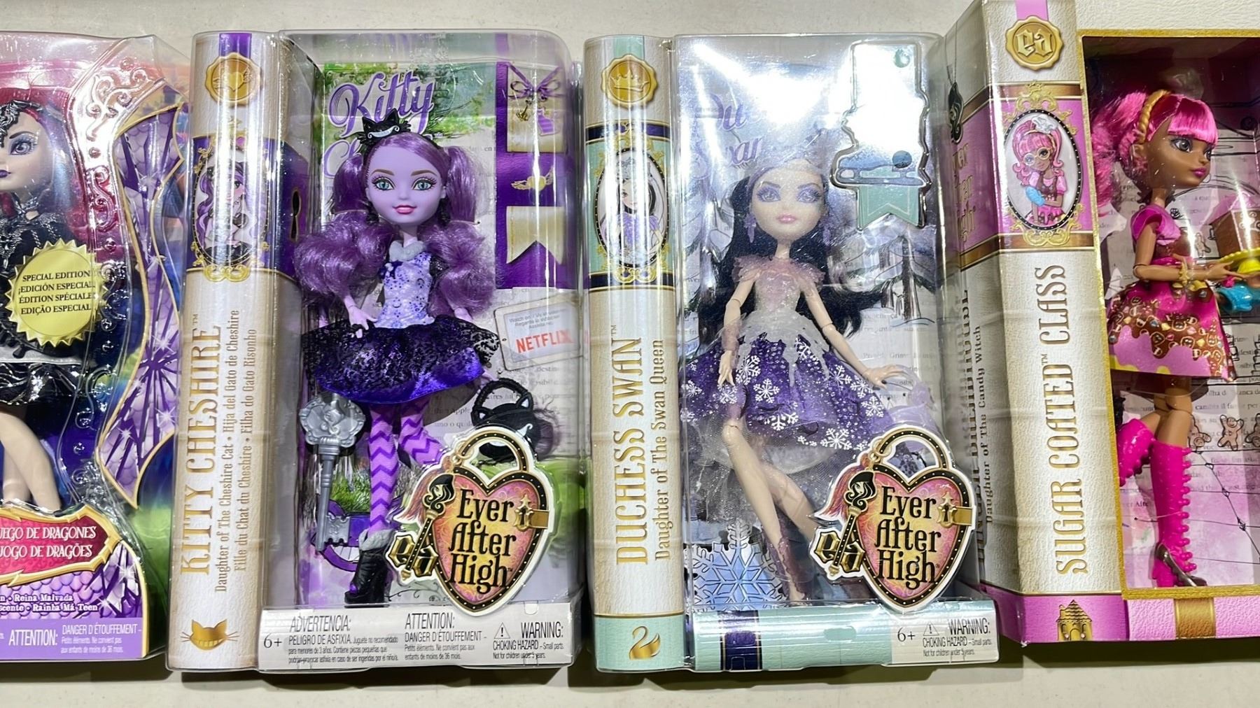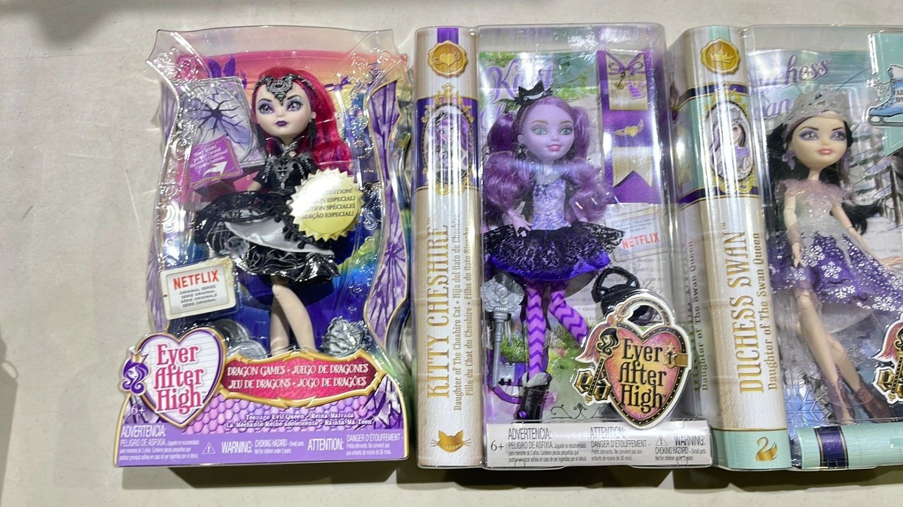 4 ASSORTED EVER AFTER HIGH DOLLS INCLUDING; KITTY CHESHIRE, TEENAGE EVIL QUEEN, DUCHESS SWAN &