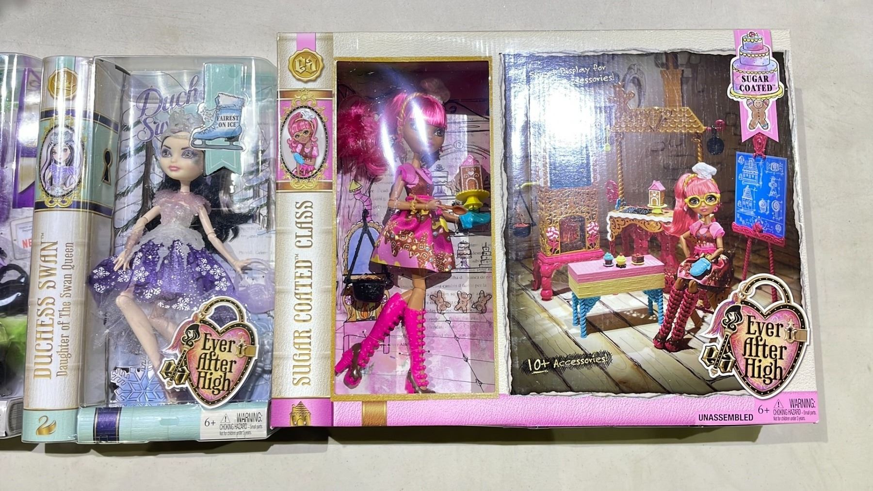 4 ASSORTED EVER AFTER HIGH DOLLS INCLUDING; KITTY CHESHIRE, TEENAGE EVIL QUEEN, DUCHESS SWAN & GINGER BREADHOUSE