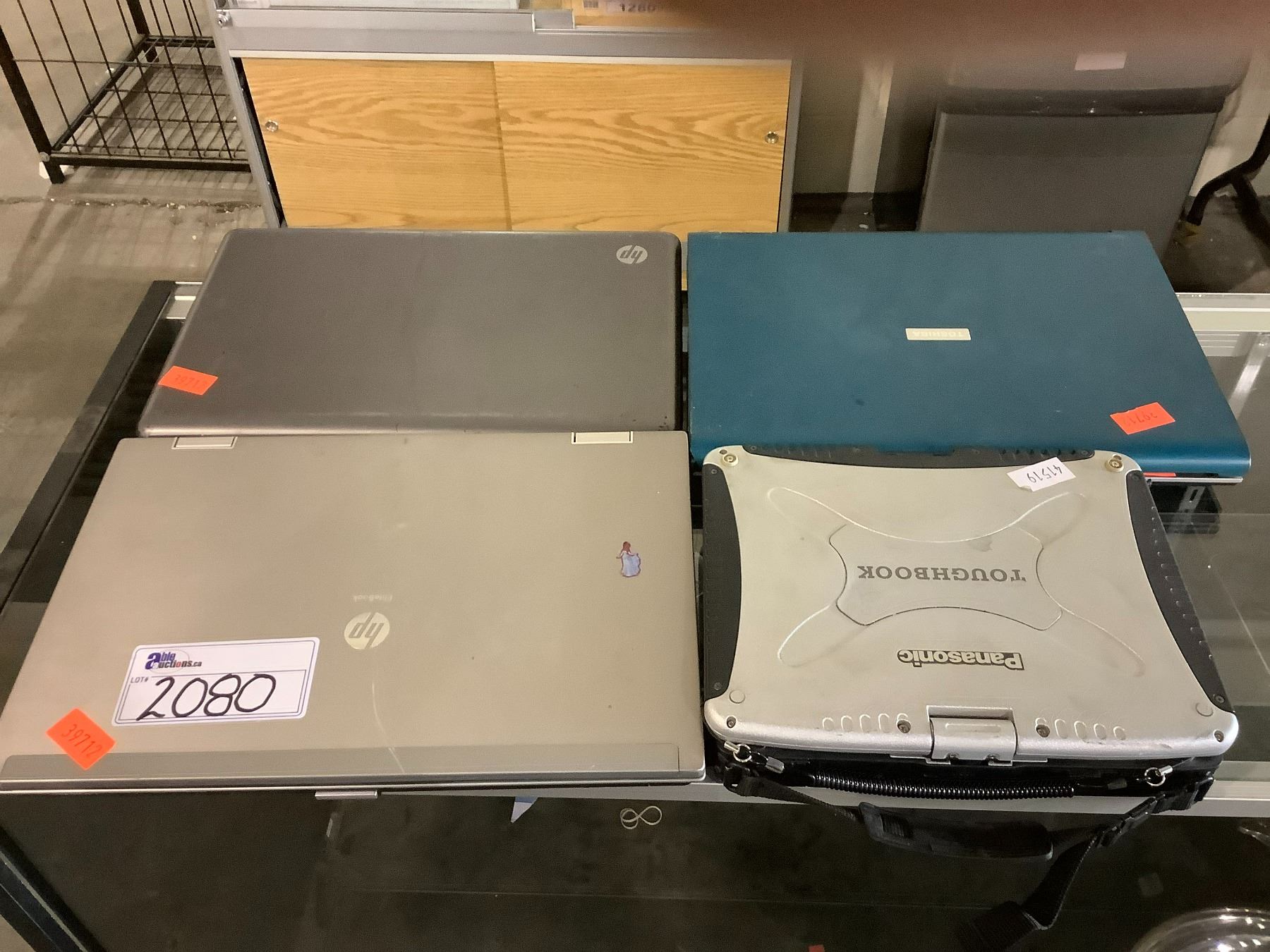 4 ASSORTED LAPTOPS, NO HARD DRIVES, NO CORDS, WORKING CONDITION UNKNOWN (PARTS OR REPAIR)