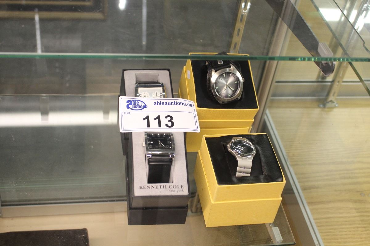 4 ASSORTED MENS WRIST WATCHES; KENNETH COLE, ALDO, AND MOVADO