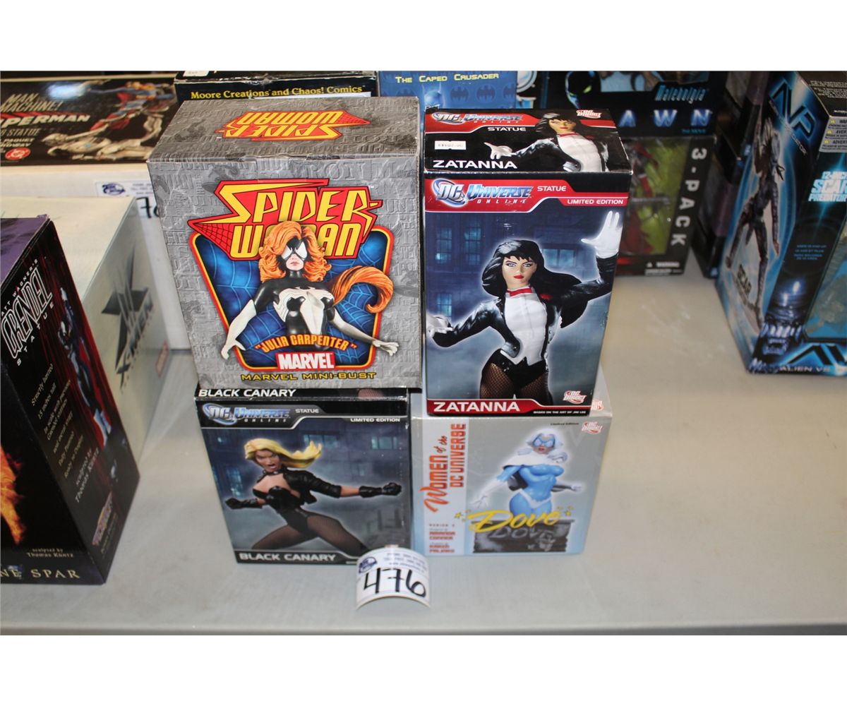 4 ASSORTED MINI BUSTS- SPIDER WOMAN, ZATANNA, BLACK CANARY, DOVE